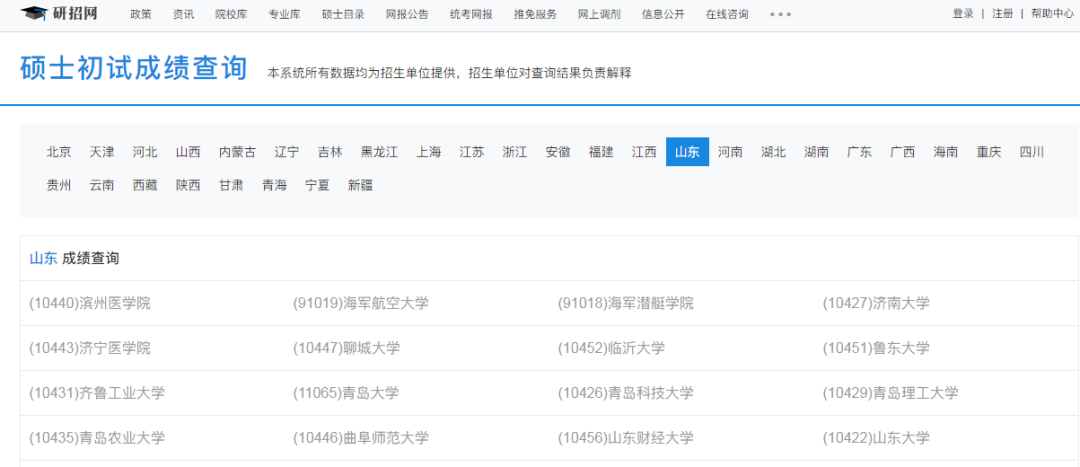 山东2020年硕士研究生招生考试初试成绩由各招生单位于2月20日(明日)公布。届时,报考我省招生单位的考生可根据招生单位官方网站发布的查询渠道进行成绩查询。