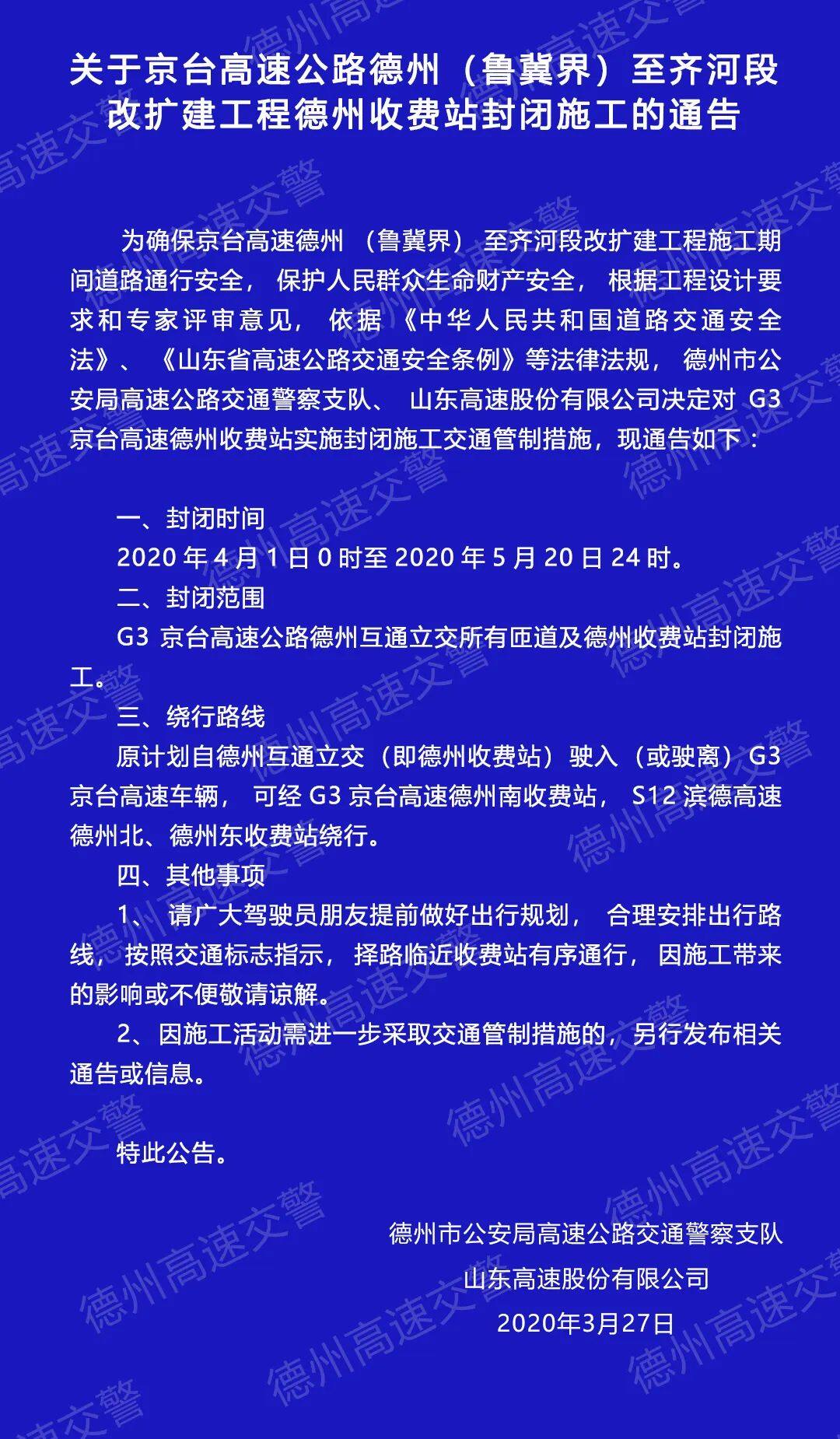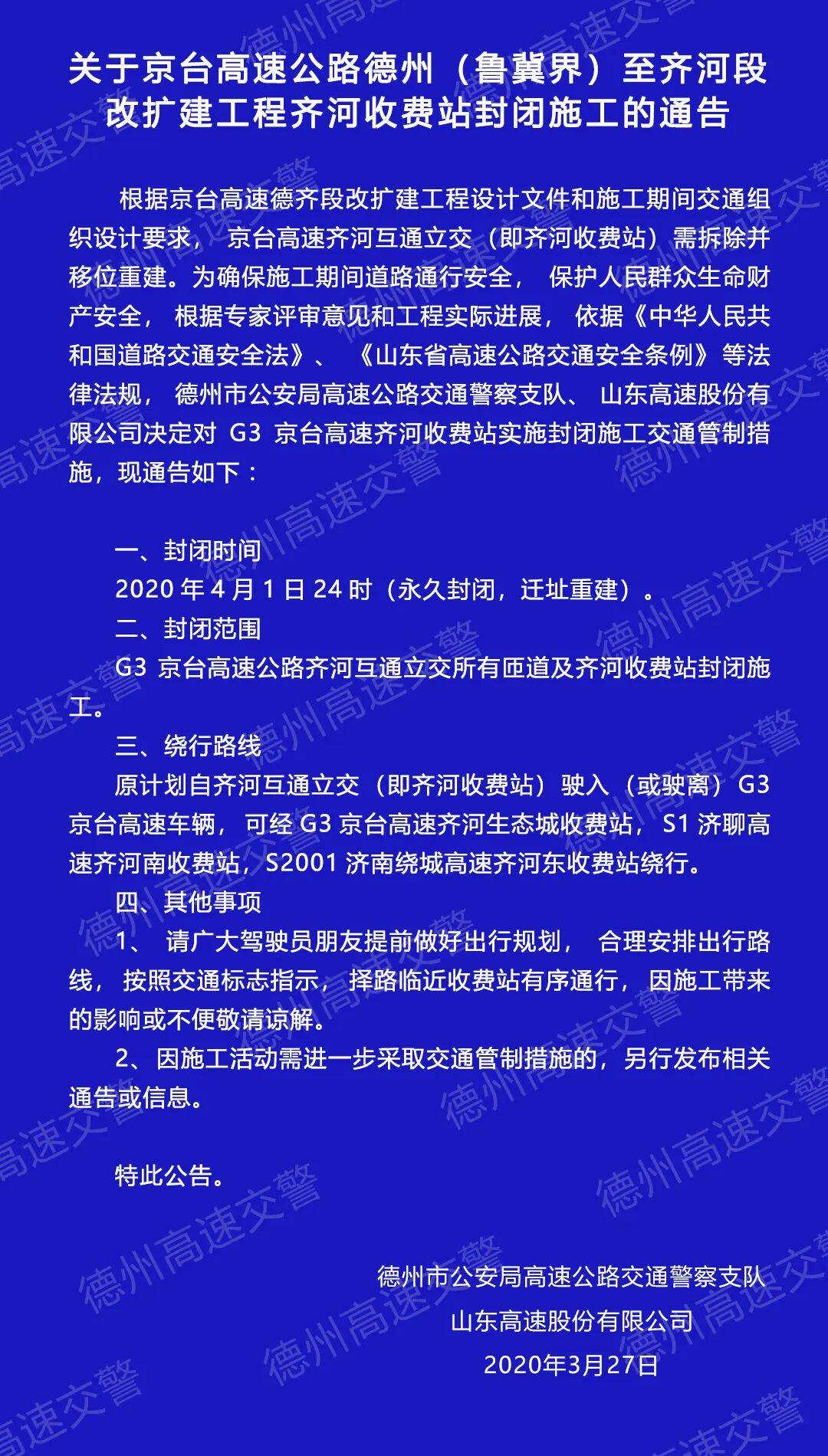 扩散周知!德州、齐河收费站封闭施工,齐河收费站将永久封闭! | 德州云-德州晚报全媒体