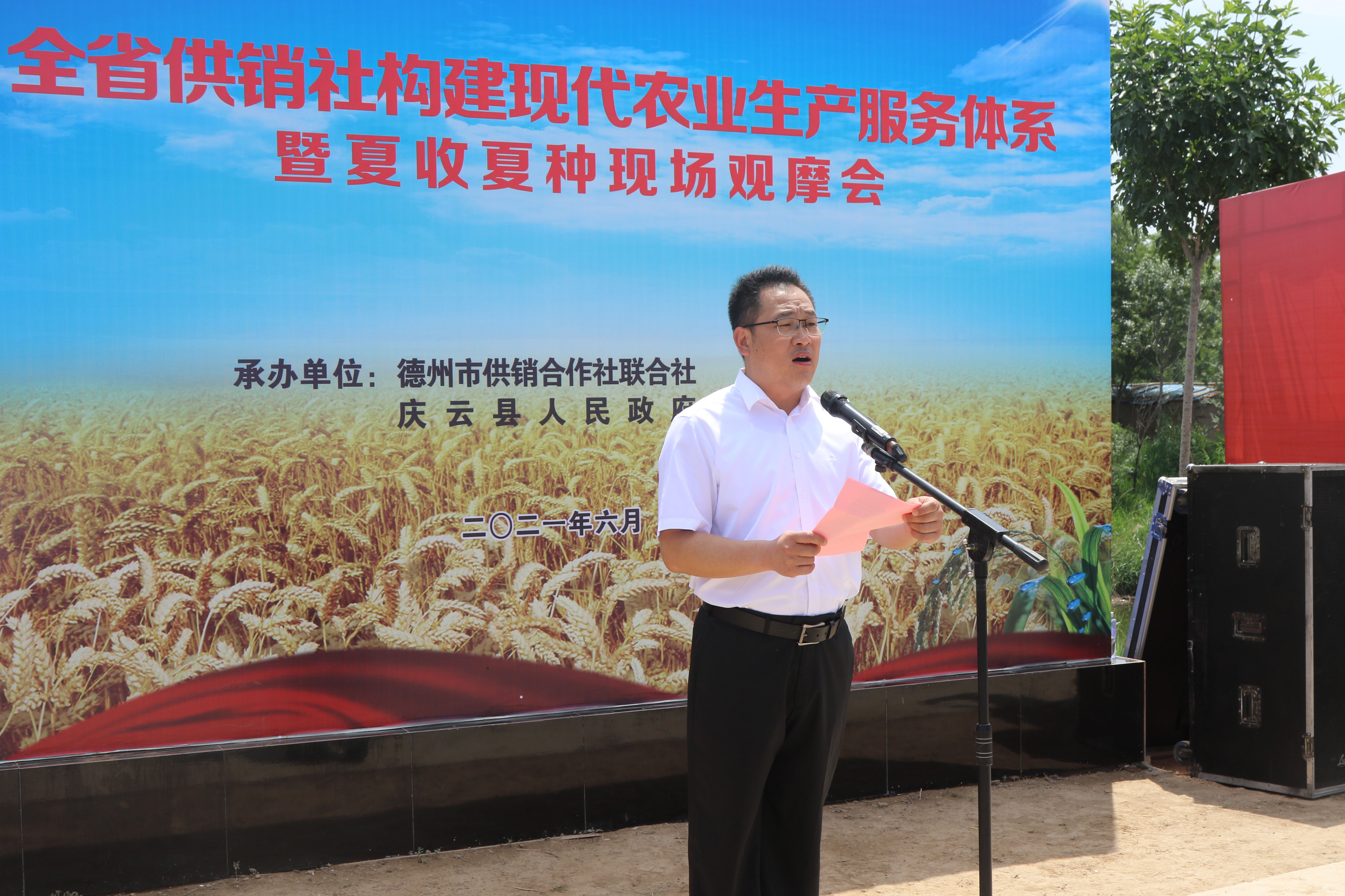 德州晚报全媒体讯 6月11日,山东省供销社构建现代农业生产服务体系暨夏收夏种现场会在庆云县召开,旨在深化土地托管服务,加快推进“土地股份合作+全程托管服务”试点,促进农业适度规模经营,助力农业增产农民增收。