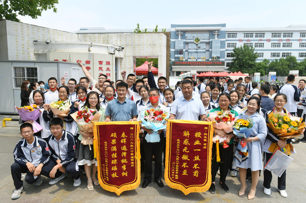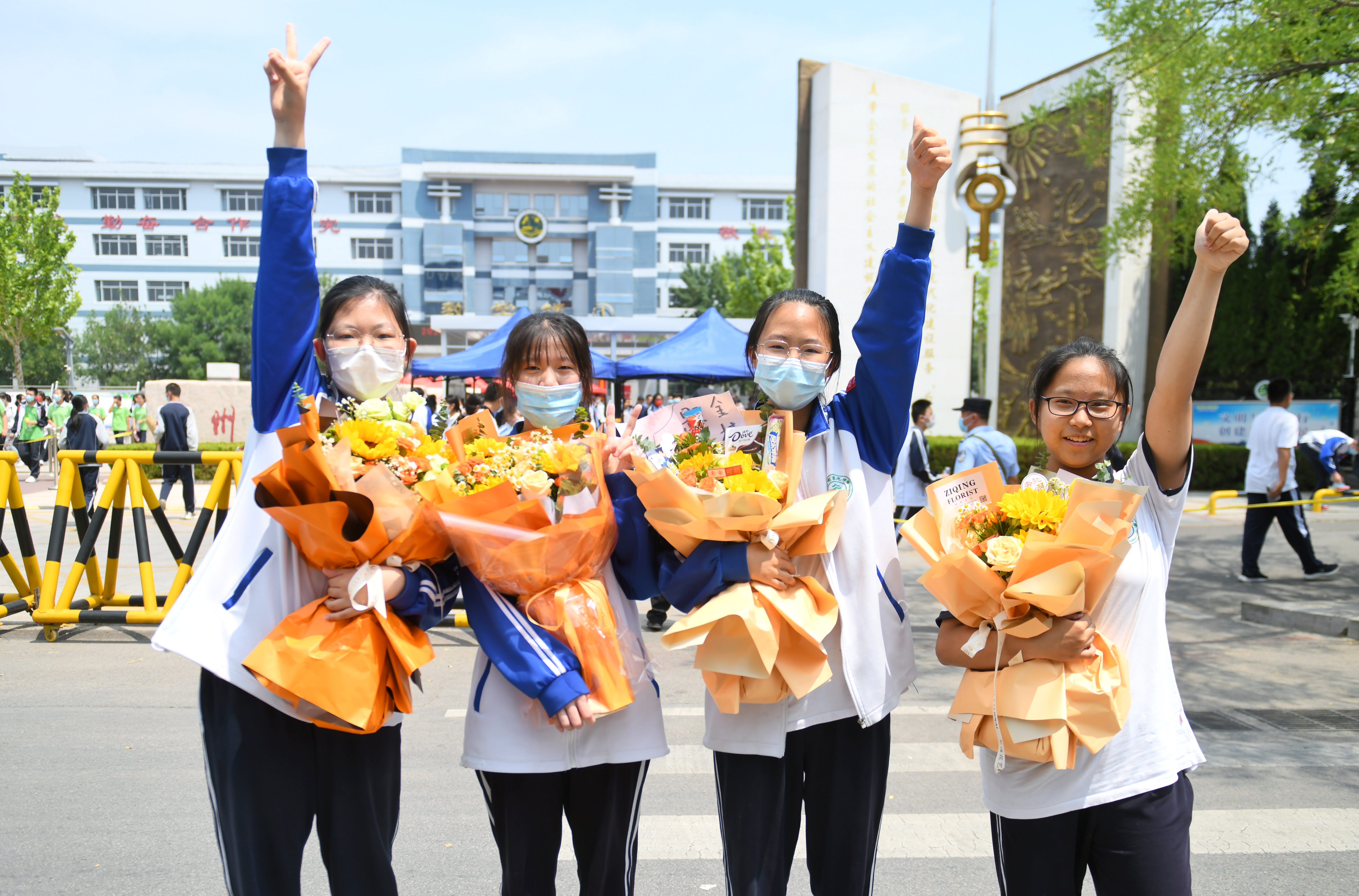 6月15日上午,随着最后一场科目考试结束的铃声响起,2022年德州中考落下帷幕。早早守候在考点外的家长,手捧鲜花、拿着气球和零食迎接孩子们。
