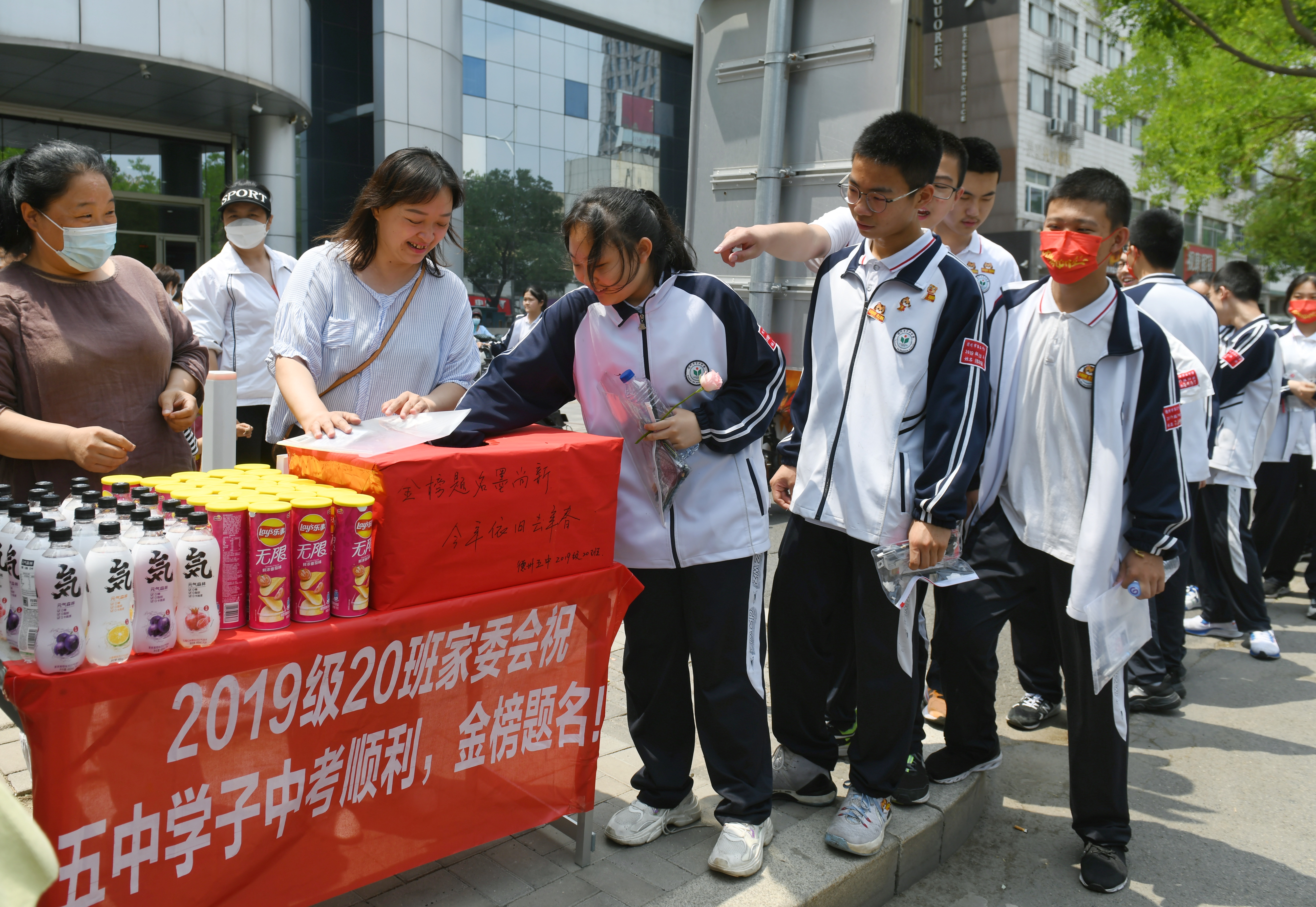当天上午11时,在德州一中西校区考点外,家长们手捧鲜花,目不转睛地盯着走出考场的学生。德州五中20班家委会的家长们在校门口拉起写有祝福语的横幅,并设置了盲盒抽奖箱,给孩子们一个惊喜。“从考试前家长们就在群里商量,如何给孩子们一个难忘回忆。我们准备了薯片、牛奶糖、饮料,还有他们喜欢的盲盒,希望他们考完试能好好放松一下。”家委会成员贾先生说。