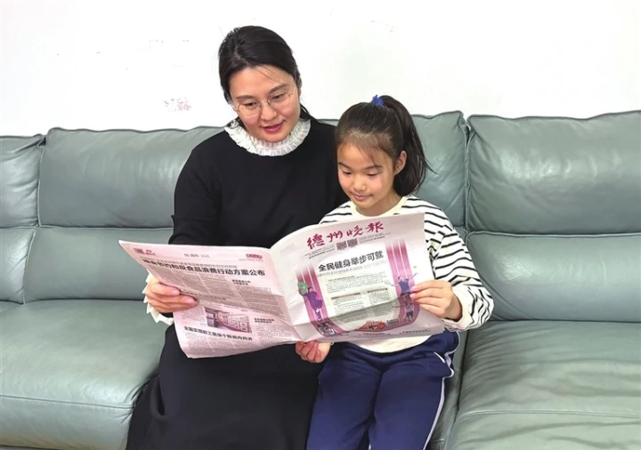每天晚上8点,夏桂林和女儿武秋妍都会围坐在餐桌旁阅读《德州晚报》。刚上小学二年级的小秋妍不时会因不认识的字向妈妈请教,她们享受着晚餐后的亲子时光。在这个家庭,《德州晚报》不仅是一份普通的报纸,更是连接母女情感的重要纽带,承载着她们共同成长的点滴。