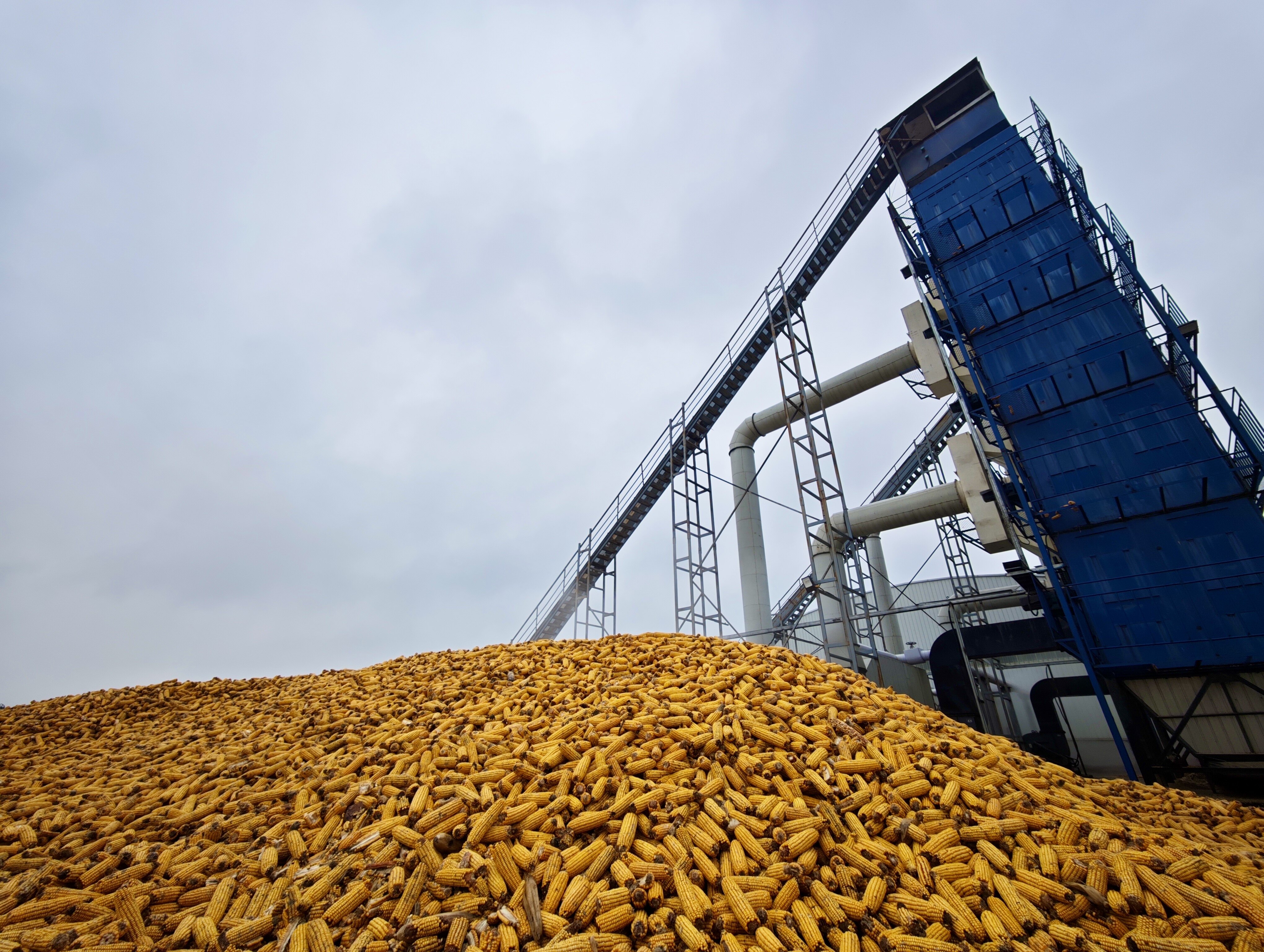 同样,在山东冀鲁边乡村振兴投资运营有限公司,大型烘干机满负荷运行。通过10个小时的作业,玉米粒的水分可以从40%以上降至18%左右,达到安全储存标准。