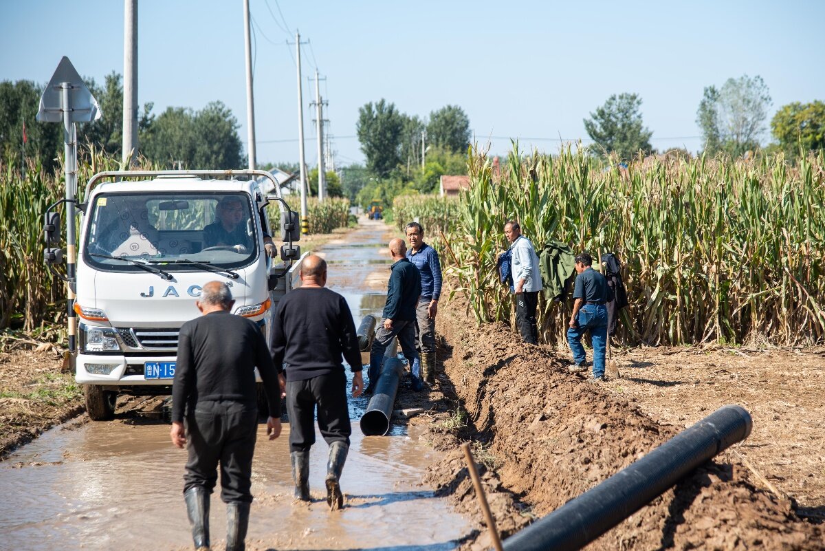 在排涝现场,扛铁锹、搬管材、清杂物、挖沟渠,紧张而有序地忙碌着。“我们今天共投入15名工作人员和1台挖掘机同步作业,重点疏通排水沟渠,同步铺设500米排水管道。”陵城区前孙镇副镇长、管区书记张清华介绍,“我们争分夺秒加快进度,力争在最短时间内排除田间积水,最大程度保障秋粮收成。”