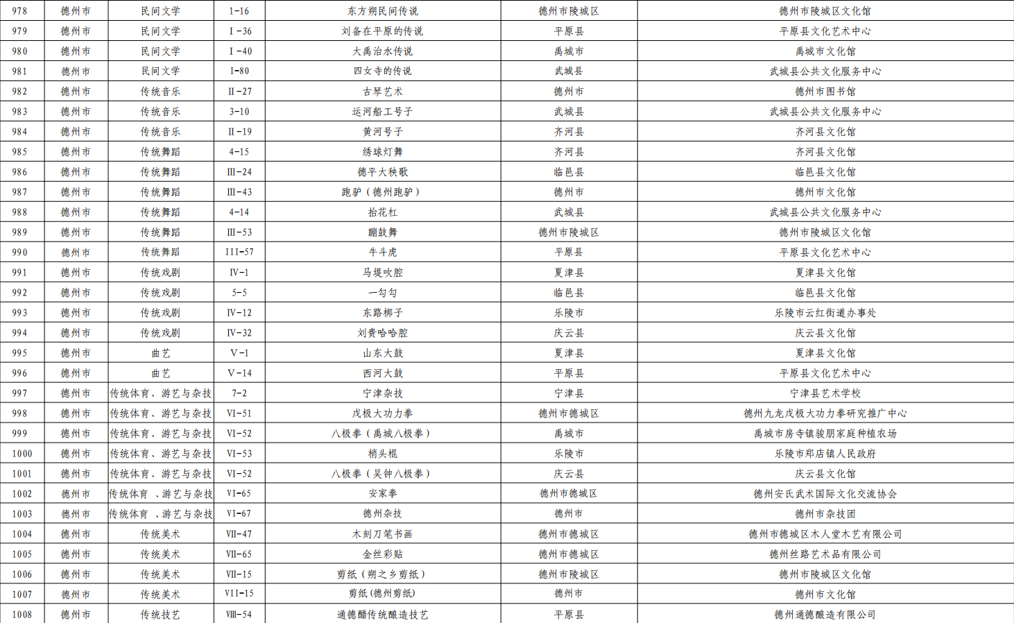 近日,山东省文化和旅游厅公布了第一至第六批省级非物质文化遗产代表性项目保护单位名单,德州共有18个项目入选。这些项目涵盖民间文学、传统舞蹈、传统体育、游艺与杂技、传统美术、传统技艺、传统医药及民俗等多个门类。