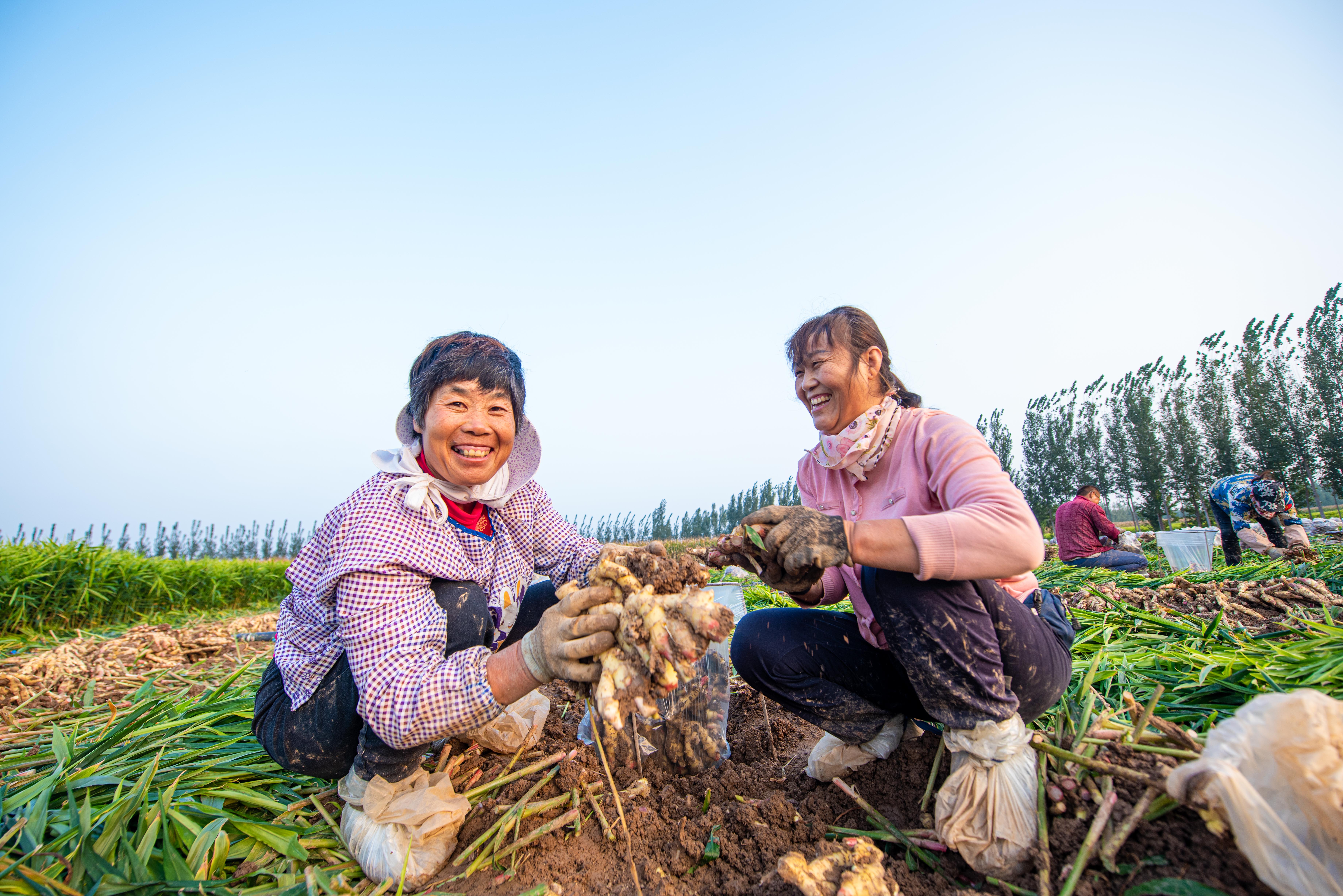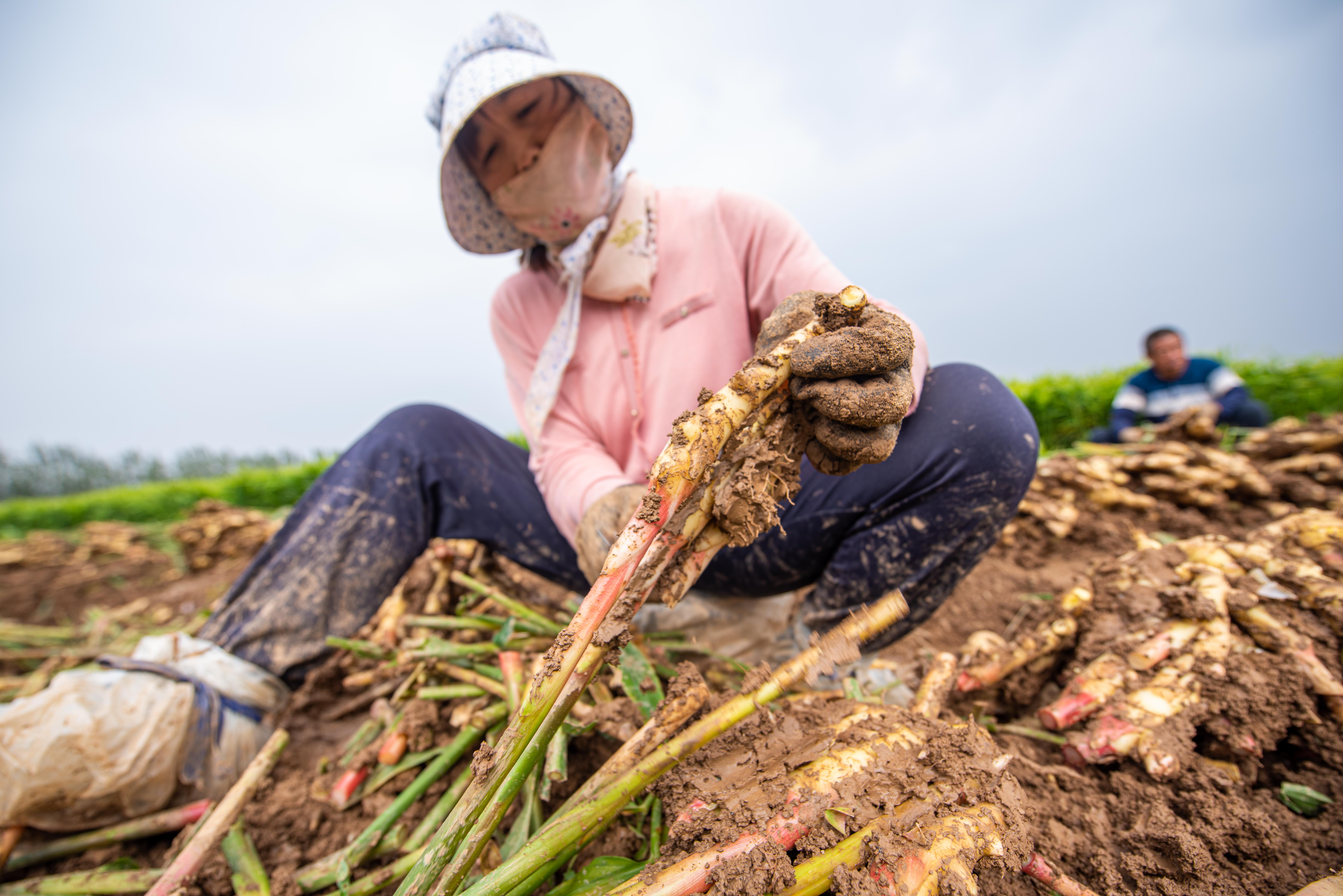 “在家门口种姜,不仅能赚钱,还不耽误照顾家里。”正在田间采收生姜的王大妈笑着说。村民李大哥告诉记者,他以前在外地打工,现在在家门口就能挣钱,收入不比外面低。