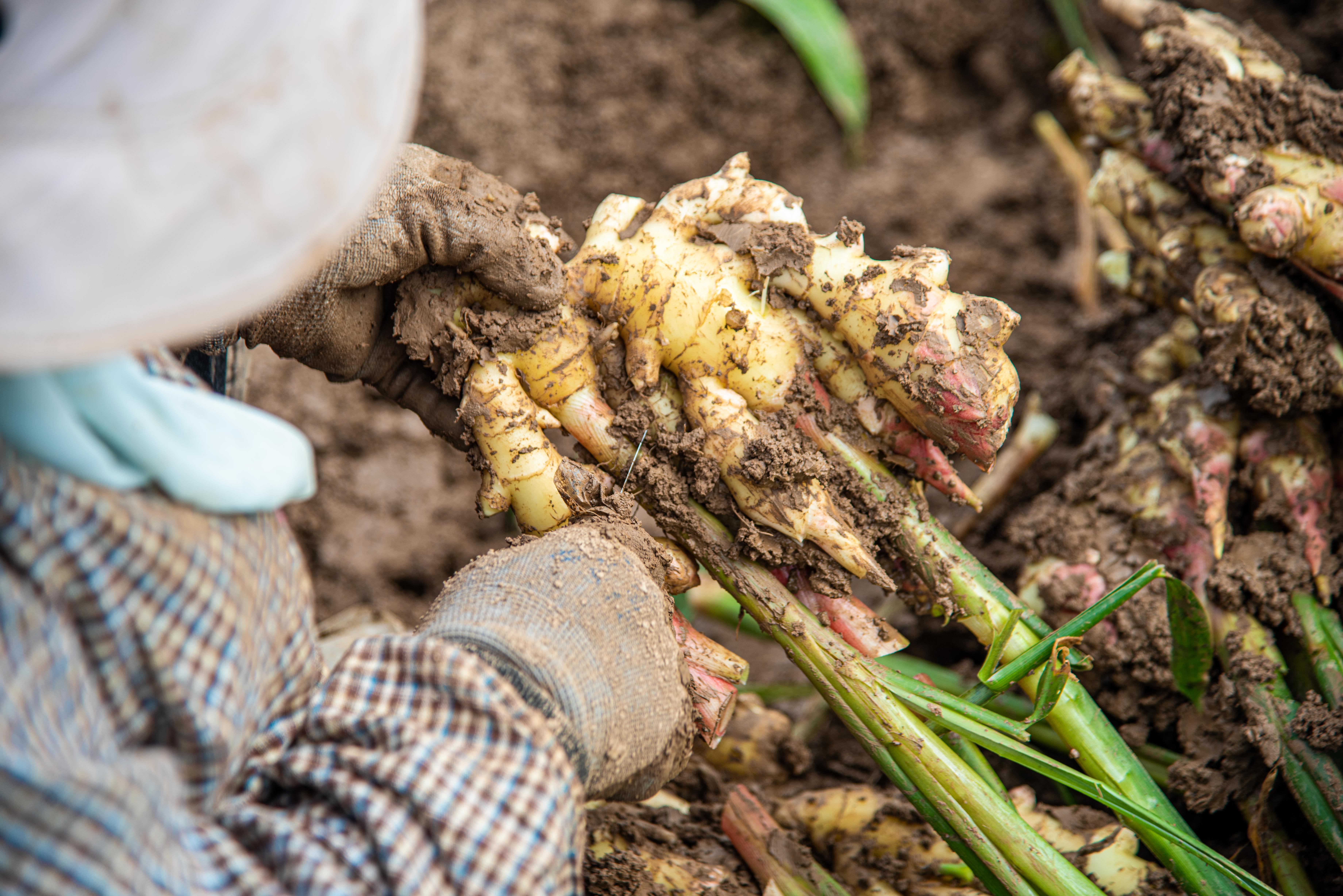 “品种选择是关键!”田光介绍,引进的红芽姜具有生长快、产量高、姜味浓郁、耐储存等特点,非常受市场欢迎。
