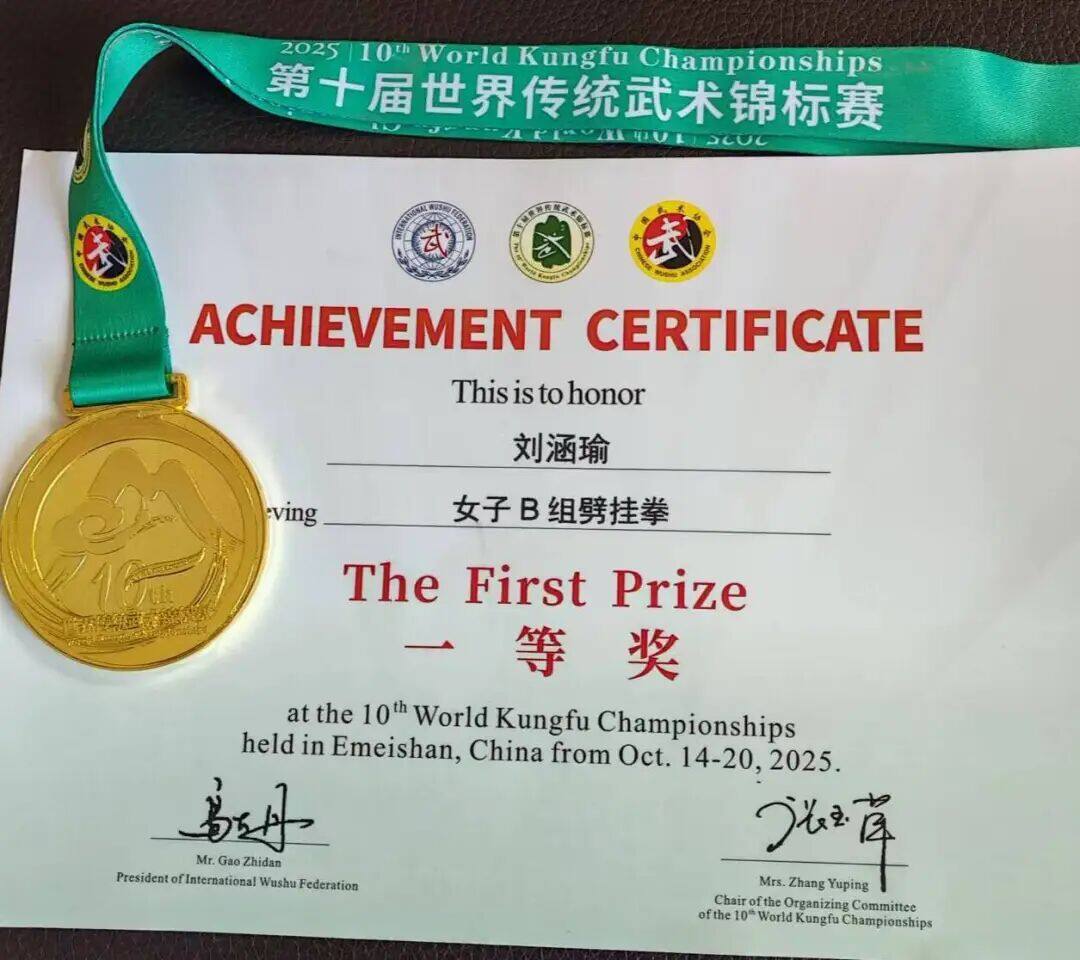 2025年8月,刘涵瑜在全国传统武术公开赛(山东赛区)中脱颖而出,成功获得第十届世界传统武术锦标赛的参赛资格。这场全球传统武术领域的顶级赛事由国际武术联合会主办,于10月14日至20日在四川峨眉山市举行。庆云县武术协会副会长冯耀臣介绍,该赛事被誉为“传统武术界的奥运会”,本届共吸引了54个国家和地区的5092名运动员参赛,涵盖个人、对练、集体三大项目,是目前全球规模最大、规格最高的传统武术盛会。赛事以“慧定峨眉・武动世界”为主题,不仅为各国武者搭建了切磋技艺的平台,更成为中华武术文化走向世界的重要窗口。