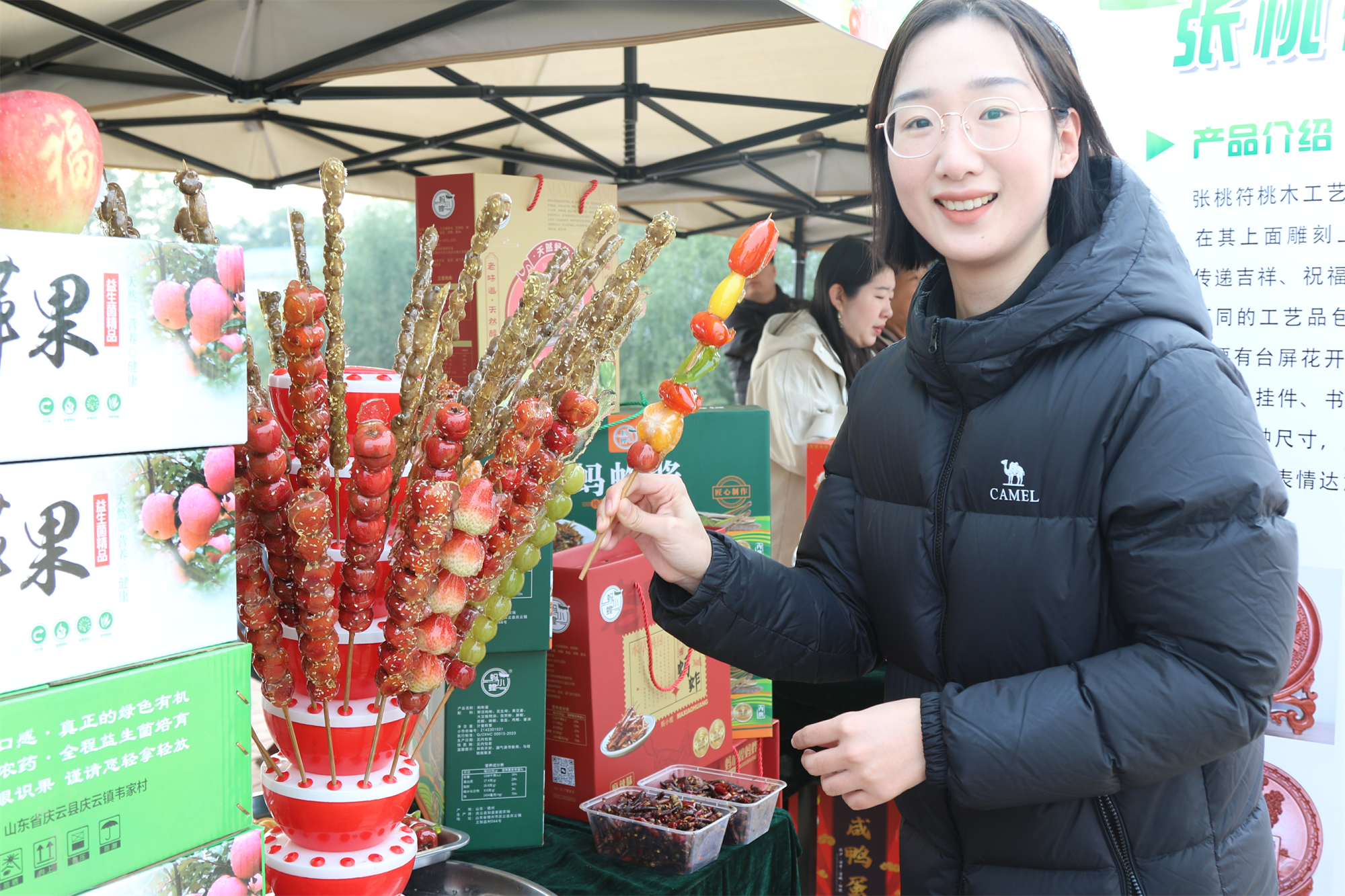 “家人们可以试试我们的菊花茶,清热降火、缓解疲劳,3号链接今天有优惠。”在后邓村展位前,村党支部书记邓长顺正通过直播平台推介菊花产品。直播间互动热烈,不少网友表示有意前来实地参观,详细了解菊花种植与产品开发。