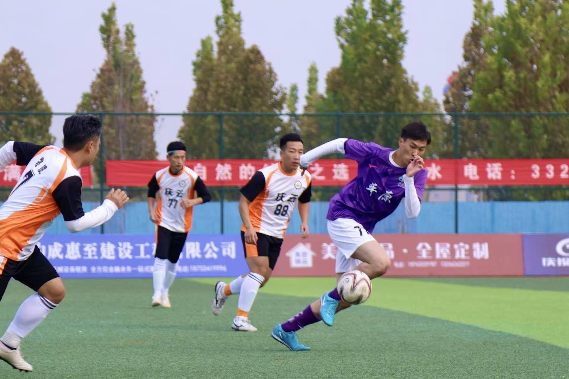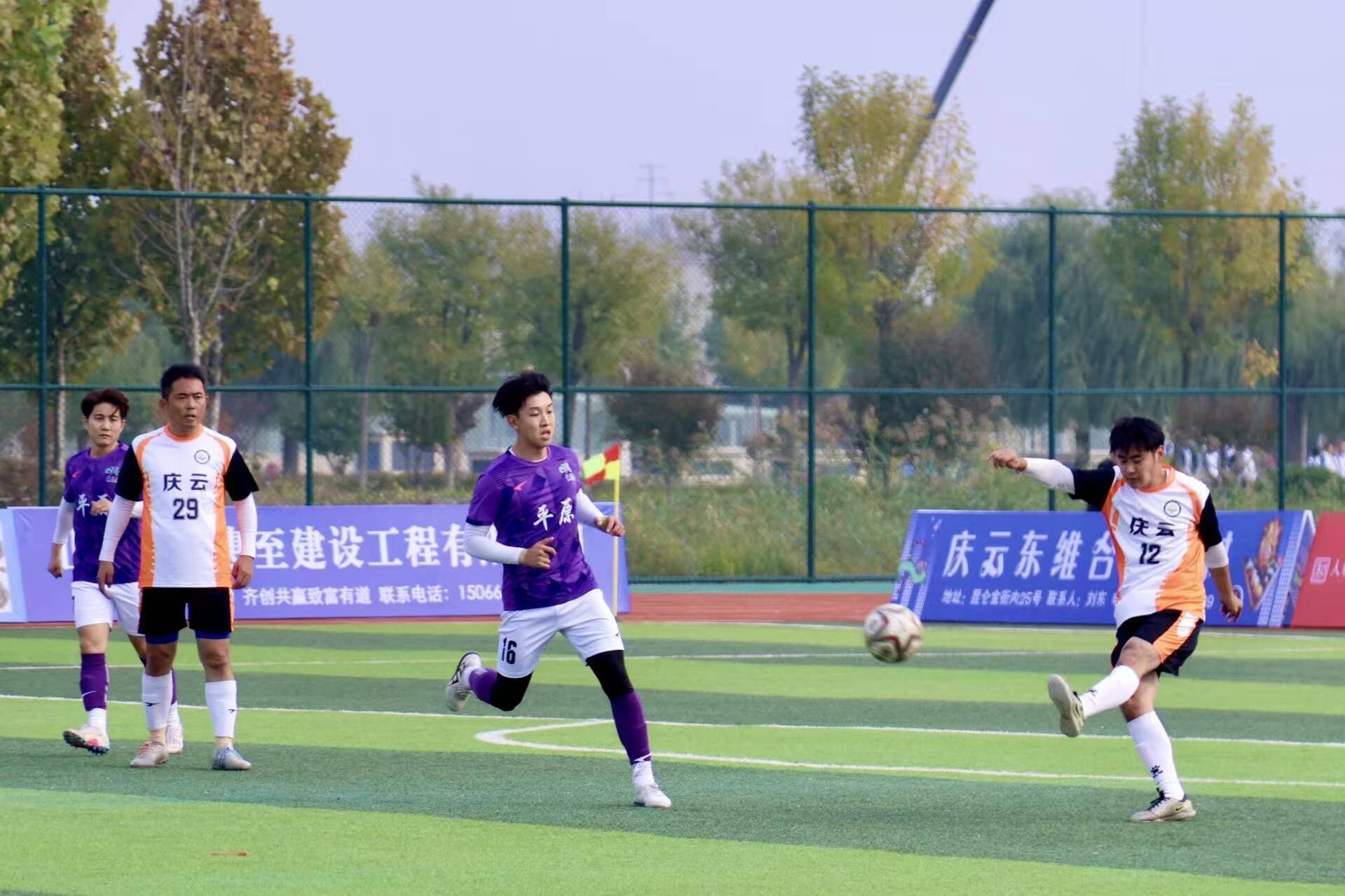 30名来自各行各业足球爱好者,组成庆云县足球代表队,代表庆云参加此次联赛。队员们默契配合、攻防交错,每一次精准传球、精彩射门,都引来场边观众的阵阵欢呼,足球运动的魅力在一次次攻防转换中尽情释放。