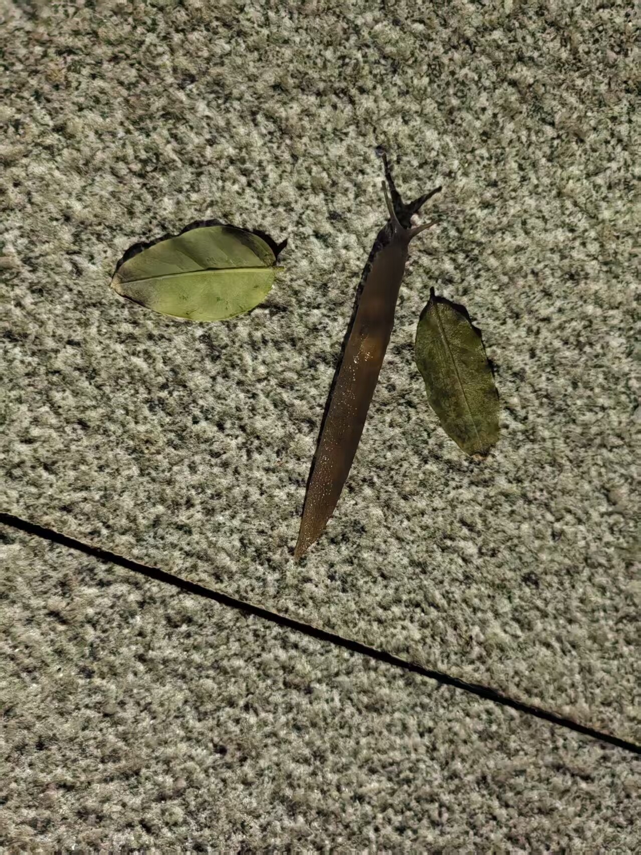 “连日阴雨过后,阴暗潮湿的环境为蛞蝓营造了理想的活动条件。”孙博士介绍,这种俗称“鼻涕虫”的动物,多栖息于阴暗潮湿的地方。从分类学角度看,蛞蝓隶属于软体动物门、腹足纲、异鳃总目、蛞蝓科,在我国分布广泛,西南、东南地区及长江流域多有本土种群栖息,而瓦伦西亚列蛞蝓等外来入侵种类也已在南北多地出现。这类生物体型差异显著,通常体长30—60毫米,大型种类可长达120毫米,身体柔软呈梭形,头部具两对触角,背部覆有带呼吸孔的外套膜,爬行时会留下明显黏液痕迹。蛞蝓具有较强繁殖能力,多为雌雄同体,通常通过异体受精繁殖,其交配后1—2周即可产卵,卵粒呈白色半透明状,藏于湿土缝隙或枯叶之下,单次产卵20—90粒,单个个体一年可多次产卵,卵孵化期仅需1至2周,短时间内即可形成庞大种群。
