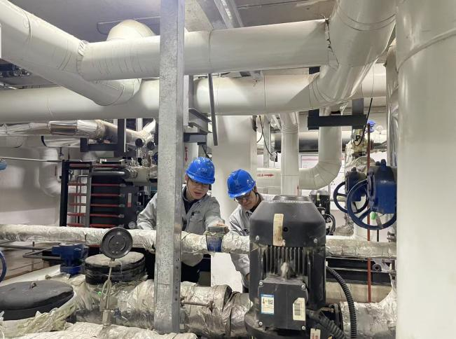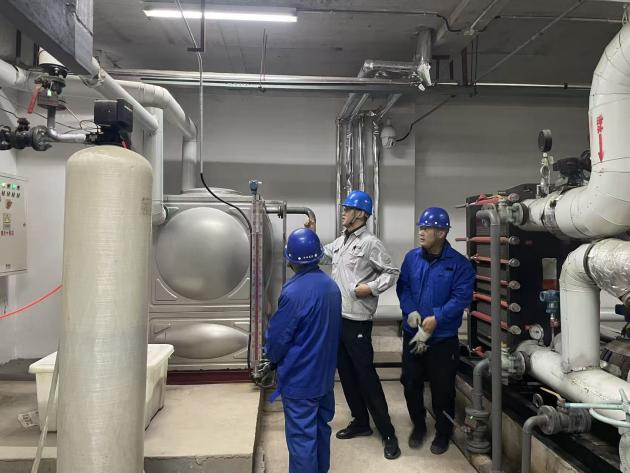 在管网注水的同时,各片区人员的全方位大巡检也在同步进行着。他们深入小区穿梭于各个换热站之间,对站内水泵、电机、压力表、温度计、安全阀等关键设备进行逐一检查确认;还要对站外管网、阀门井及入户单元阀门等进行地毯式排查,绝不放过任何一处漏点和安全隐患,对于发现的问题,立即记录并迅速通知维修队伍进行抢修。全面提高系统可靠性,确保将故障消除在萌芽状态,保障管网系统以完好状态迎接供暖期。