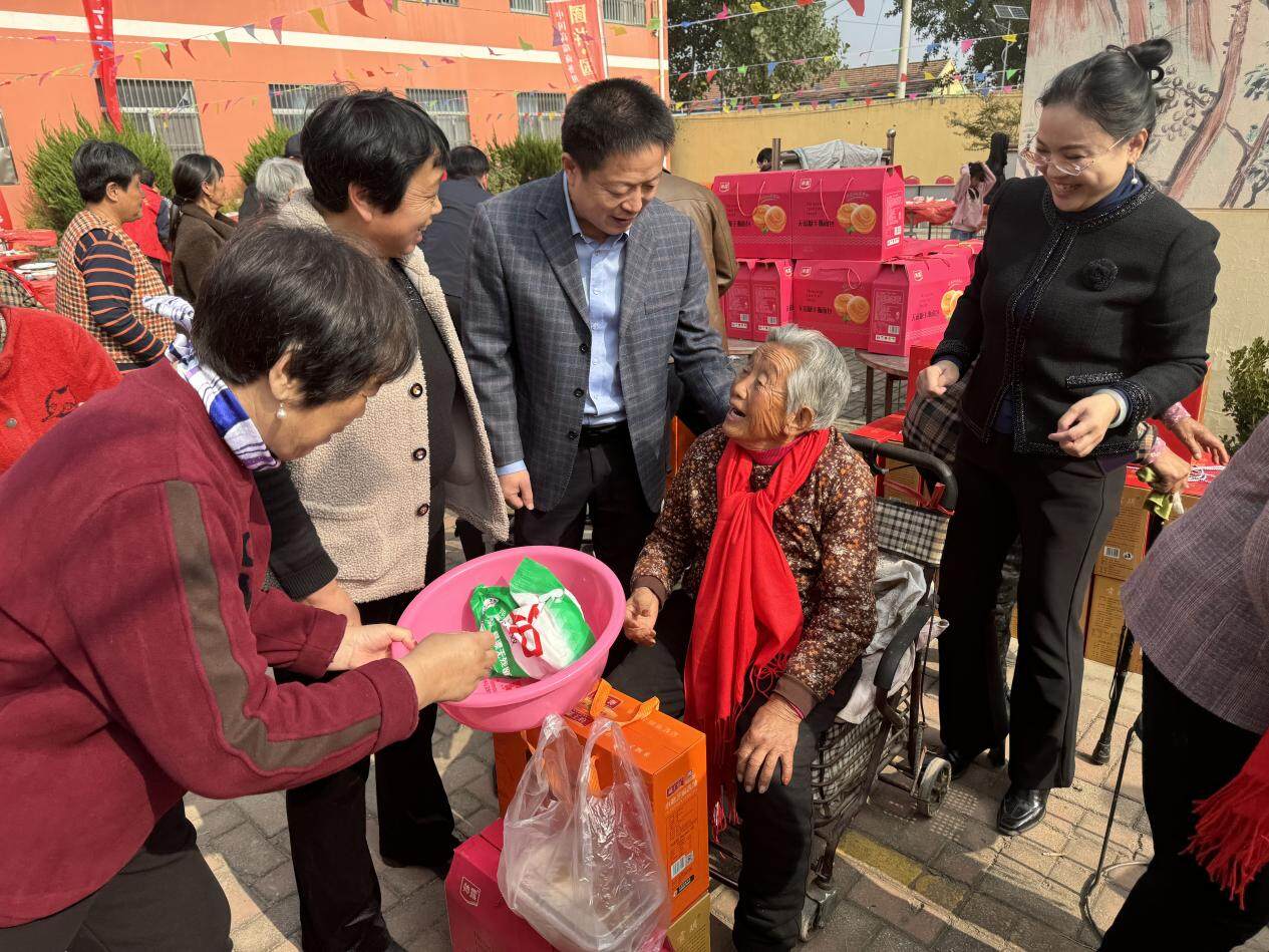用餐结束后,老人们还收到了装满扒鸡、面包、香油、鸡蛋等生活物资的“重阳暖心大礼包”,每一件慰问品都饱含着对老人们的关爱。