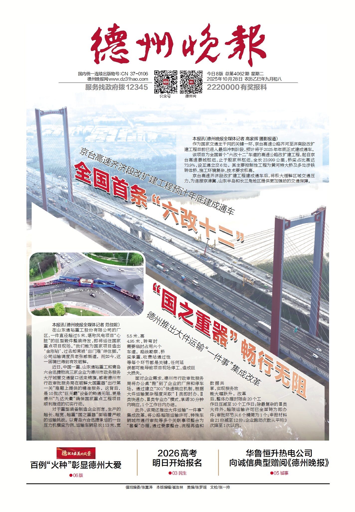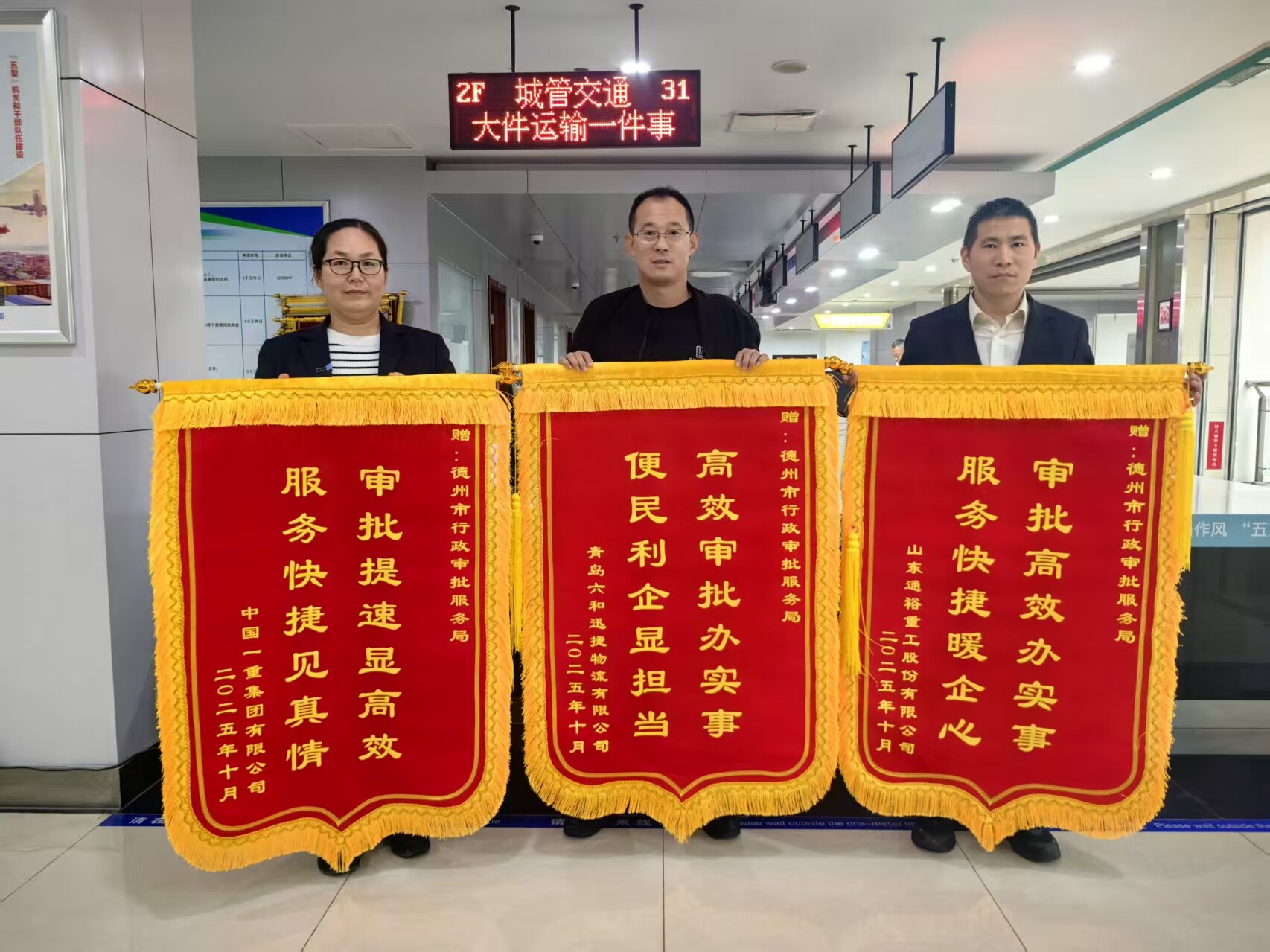 近日,中国一重、山东通裕重工和青岛六合迅捷物流三家企业为德州市政务服务大厅城管交通窗口送来锦旗,感谢德州市行政审批服务局在破解大国重器“出行第一关”难题上提供的精准服务。这背后,是10批次“巨无霸”设备的畅通无阻,更是德州“九达天衢”确保国家重点工程项目顺利推进的切实行动。