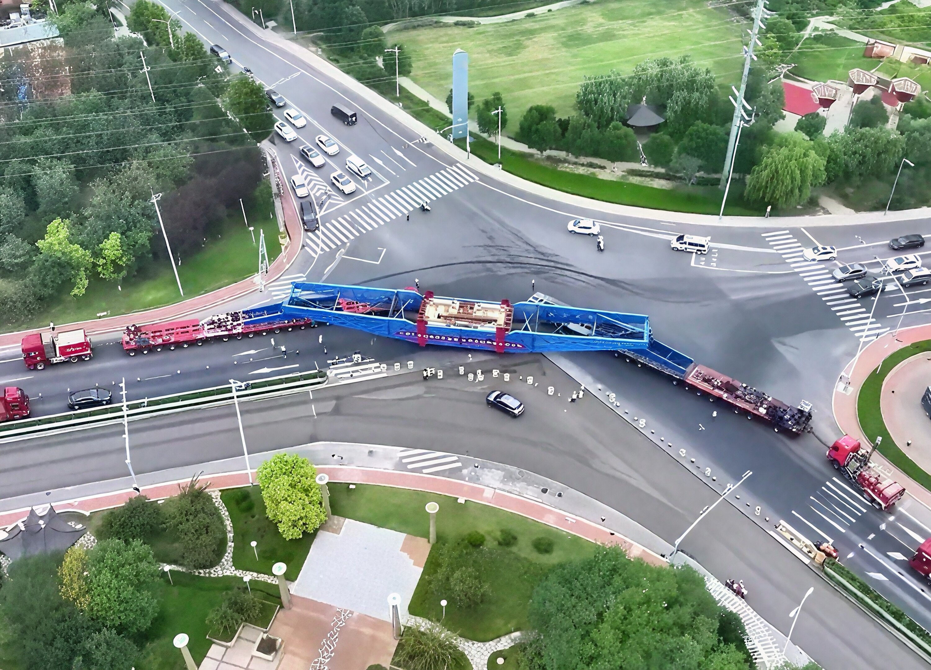 对于重型装备制造企业而言,生产的超长、超宽、超重“国之重器”面临着严峻的运输挑战。以青岛六合迅捷承运的一台压力机横梁为例,运输车辆总长113米、宽5.5米、高4.95米,转弯时需要临时占用六个车道。路线勘察、桥梁承重、收费站通过性等每个环节都是关键,任何延误都可能导致项目现场停工,造成巨大损失。