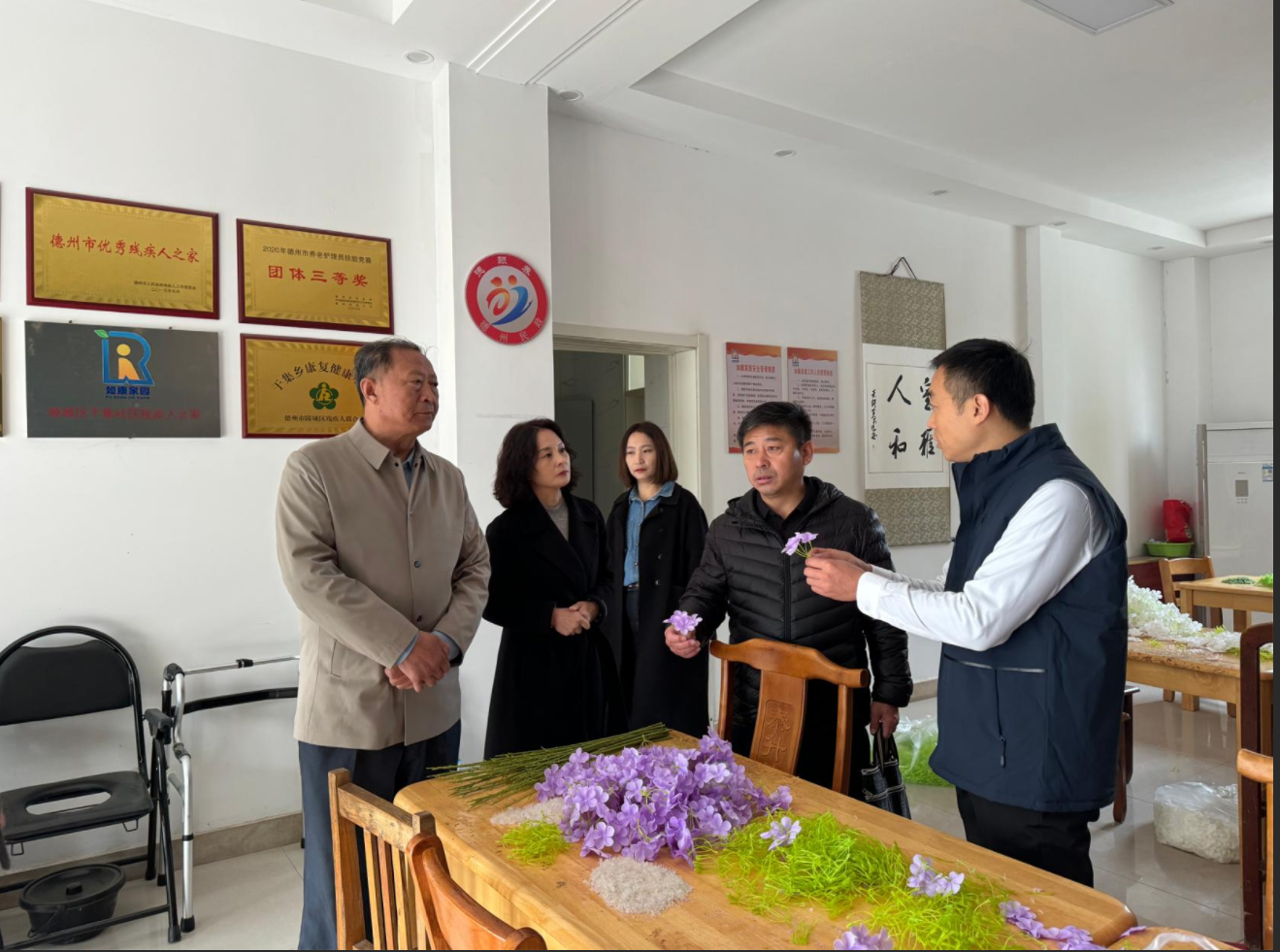 参观院区环境后相关领导召开了座谈会,东方朔书画院名誉院长、东方朔文化研究会会长、陵城区关工委主任张法利向在场的老人们致以节日的问候,并高度肯定了养老服务工作的重要意义。他指出艺术与公益结合,是丰富养老生活的重要途径。