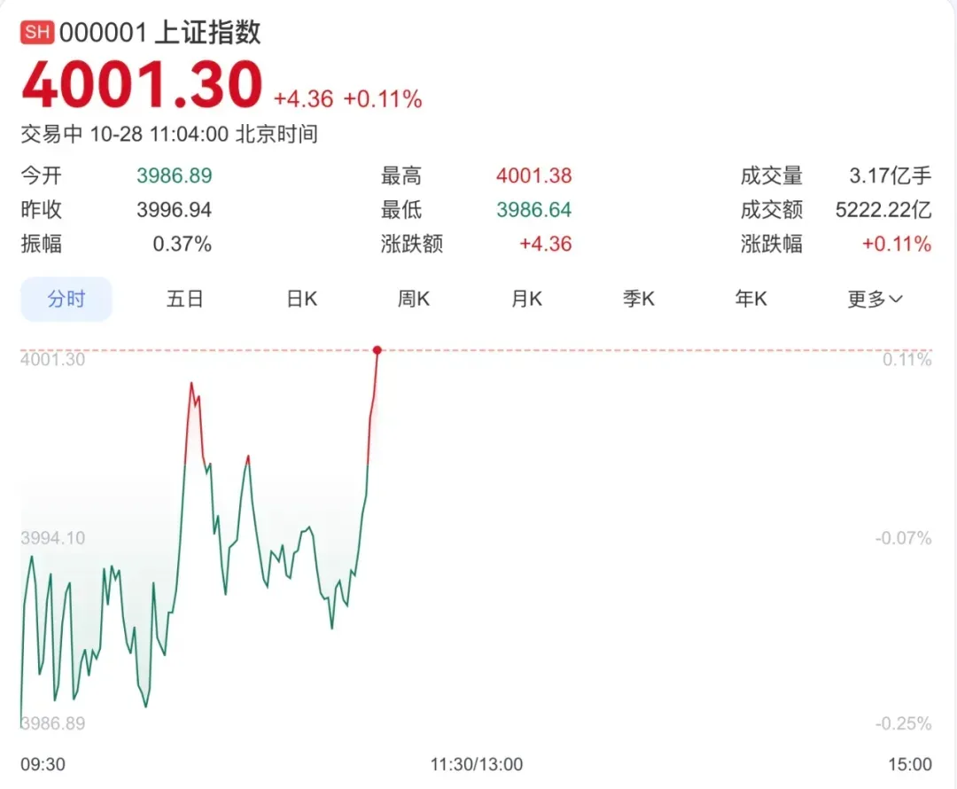 时隔10年,沪指重上4000点!