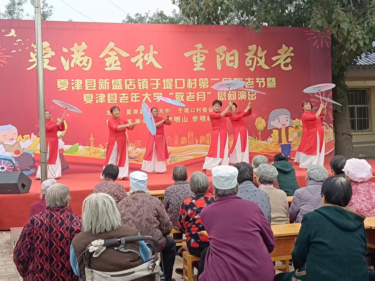 活动现场锣鼓喧天、笑语不断。在于堤口、拐尔庄等村为老人们带来了形式多样的精彩节目——铿锵有力的戏曲选段赢得满堂喝彩;欢快活泼的秧歌舞步点燃现场气氛;一首首经典老歌更引发了全场老人的集体合唱。台上台下热情互动,掌声与欢笑连绵不断,将重阳节的喜庆氛围一次次推向高潮。