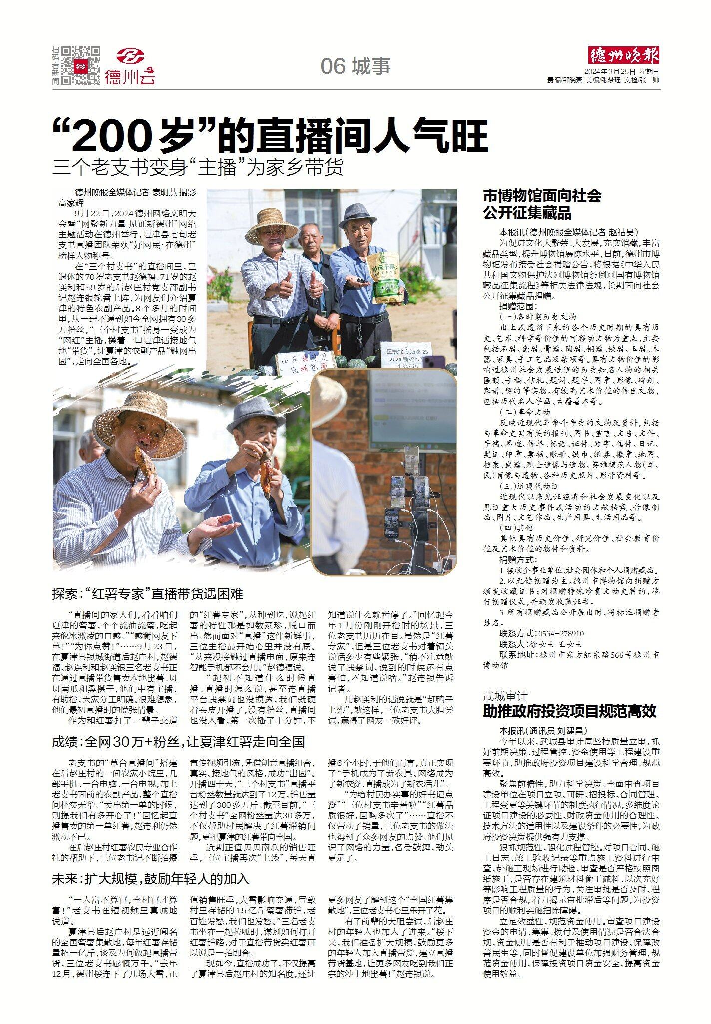 10月29日,中国晚报工作者协会第40届年会暨第八届理事会第三次会员代表大会在云南昆明举行,会上公布2024年度赵超构新闻奖获奖名单,在150余家单位报评的1000余件作品中,本报稿件《“200岁”的直播间人气旺 三个老支书变身“主播”为家乡带货》脱颖而出,获得全国晚报界最高荣誉——赵超构新闻奖特等奖(全国共20件),这也是本报第二次获得该殊荣。(查看更多)