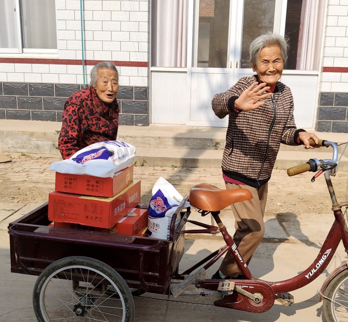 在三屯村,爱心人士和崔口镇邮政的工作人员还为老人们备好贴心礼品,一袋袋点心、一桶桶食用油、一袋袋面粉整齐摆放,志愿者和工作人员挨个儿将礼品送到老人们手中,手把手帮老人拎好,让老人们饱餐过后,延续温暖。