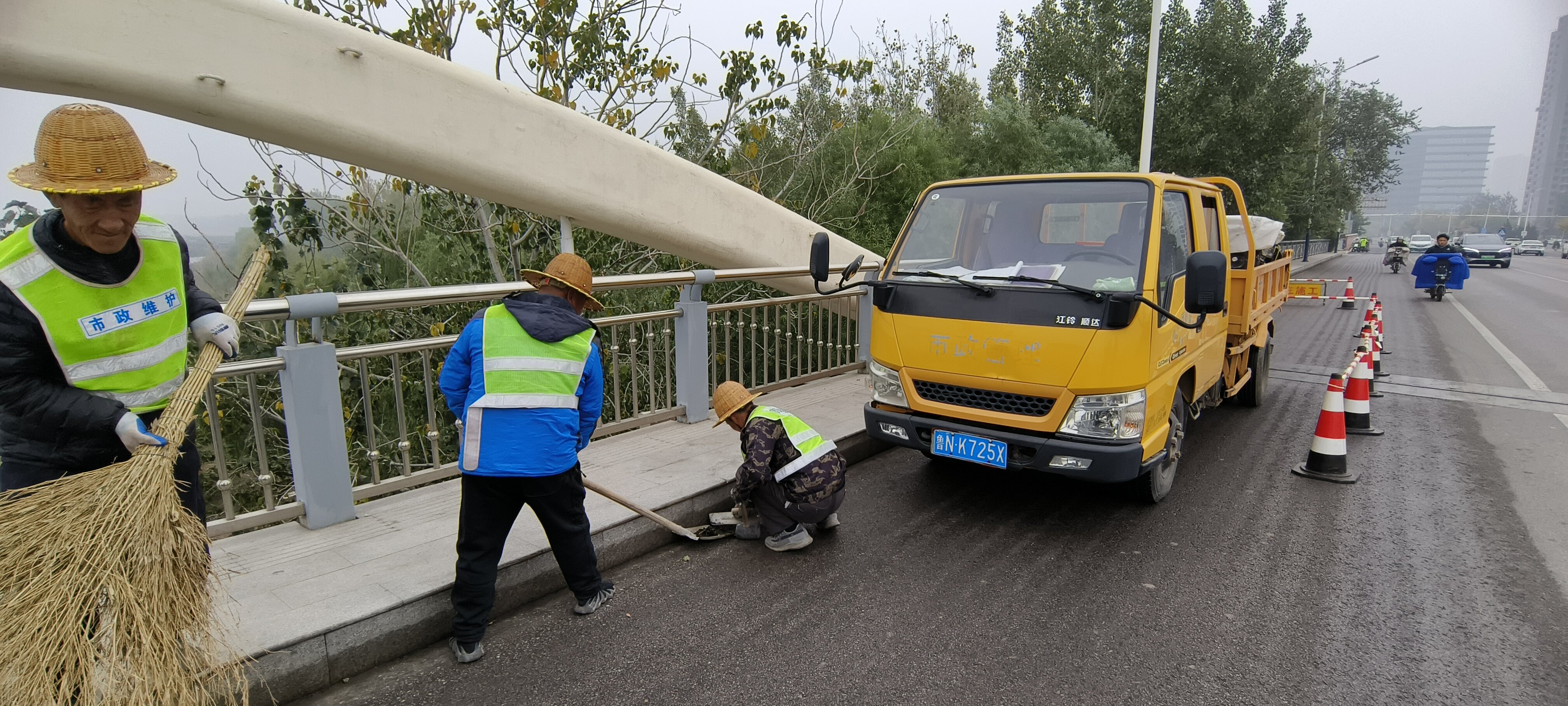 截至目前,已完成10余条主干道人行道、7座重点桥梁的首轮排查,累计整改人行道路面破损、桥梁泄水孔堵塞等隐患20余处。同时,已组建24小时应急抢险队伍,确保冰雪天气下能够迅速开展除冰防滑作业,提升应急响应能力。