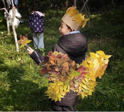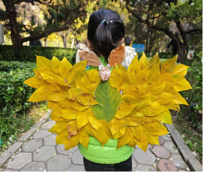 这样的蝴蝶还不够完美,让我们借助秋叶,给蝴蝶来一场华丽的变身吧。孩子们在老师的带领下走进植物园,在金黄与绯红交织的落叶世界里,开启了一场自然艺术的探索。