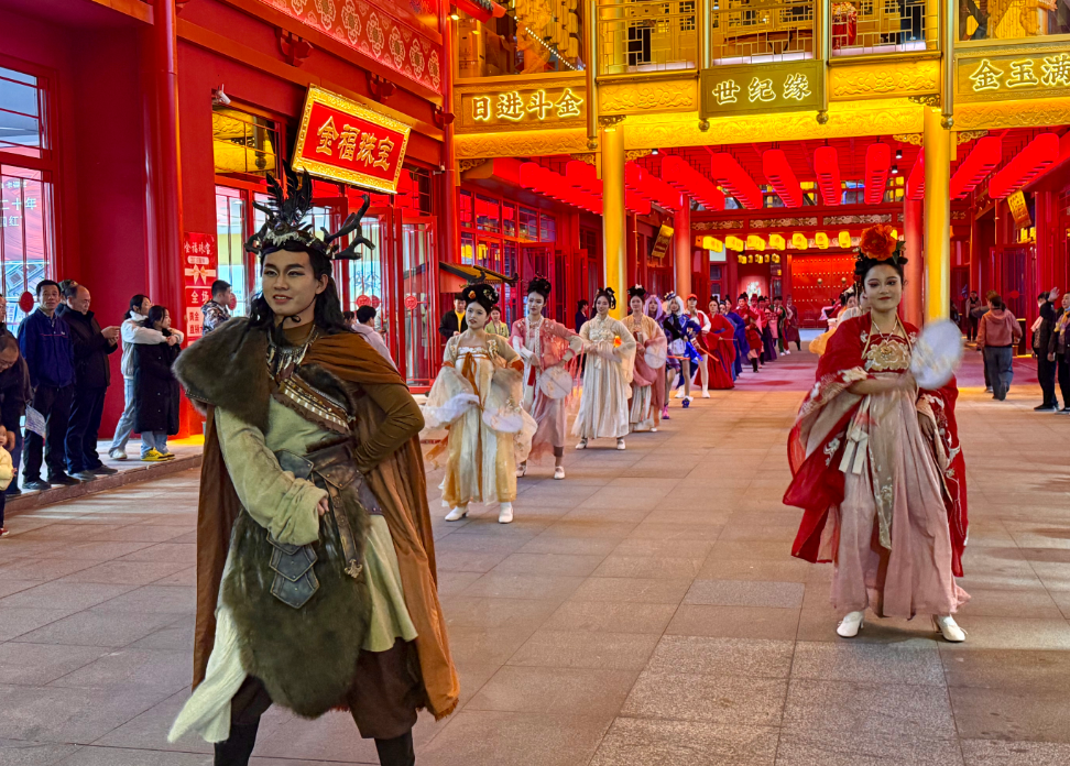 “今年‘跟着电影去旅游’全国启动仪式在乐陵影视城举办后,我们顺势推出了NPC互动、电影主题展、演艺嘉年华等沉浸式项目,游客量、旅游消费和观影人次都有显著增长。”乐陵影视城营销管理总监李旭介绍,目前园区内的NPC演员约有350人,涵盖舞蹈、戏剧、杂技、马术等多个领域;旅游旺季时,演职人员峰值可达400人次;影视拍摄密集期,还会根据剧组需求提供群演服务。