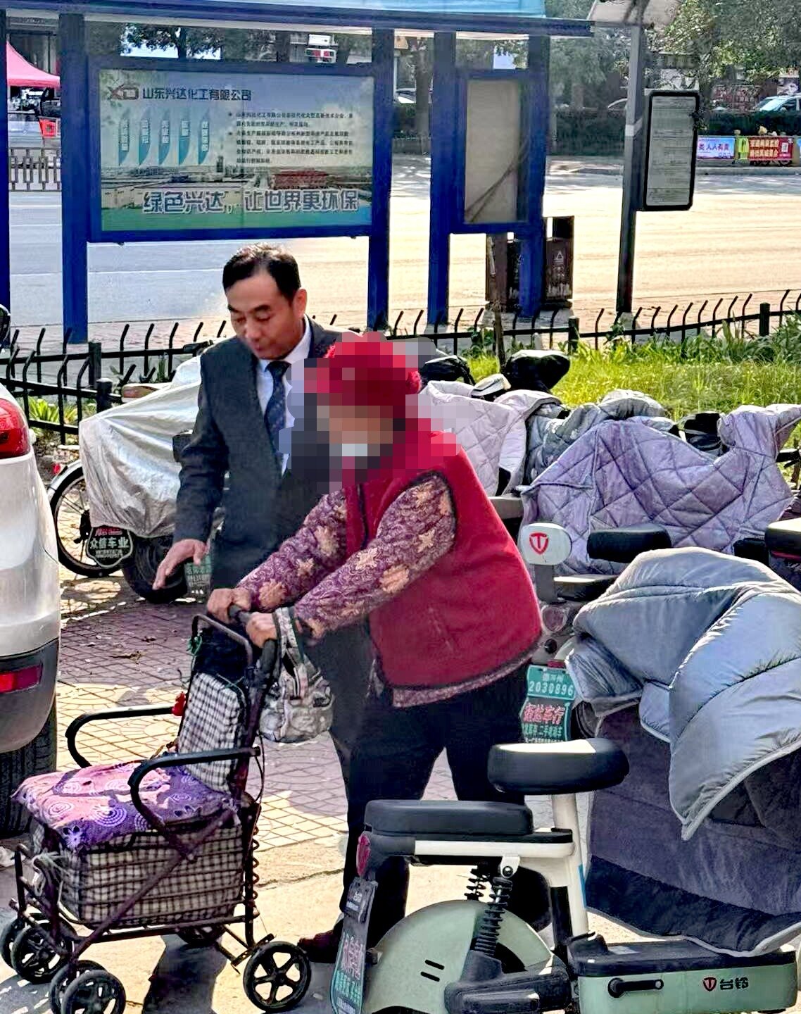 11月3日下午,在农业银行德州禹城市支行下辖市中支行的营业厅,网点主任王强正小心翼翼地搀扶着刚办完工资支取业务的单老太太,缓步走下门前的台阶。