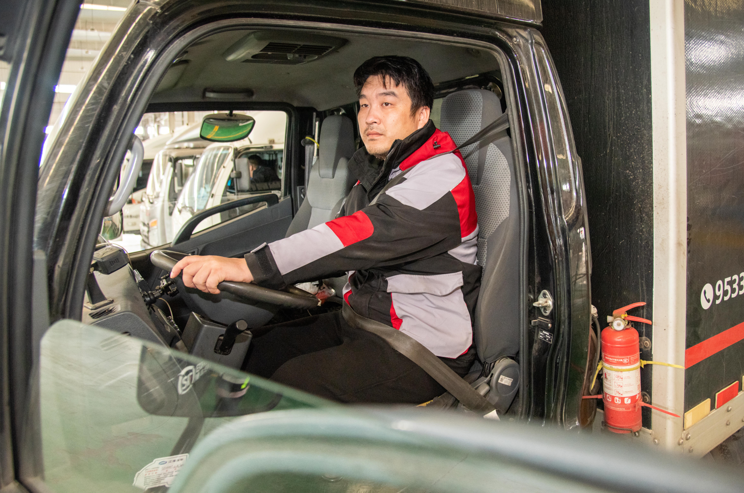 今年38岁的洪涛是德州顺丰快递车司机,平日里驾驶着一辆4.2米长的厢式快递车,负责宁乐庆方向的包裹转运。他每天往返于中转场与末端网点之间:将包裹从中转场分送至各个网点,再将网点收集的待寄出包裹装满一车,带回中转场。今年,他迎来第三个“双十一”。