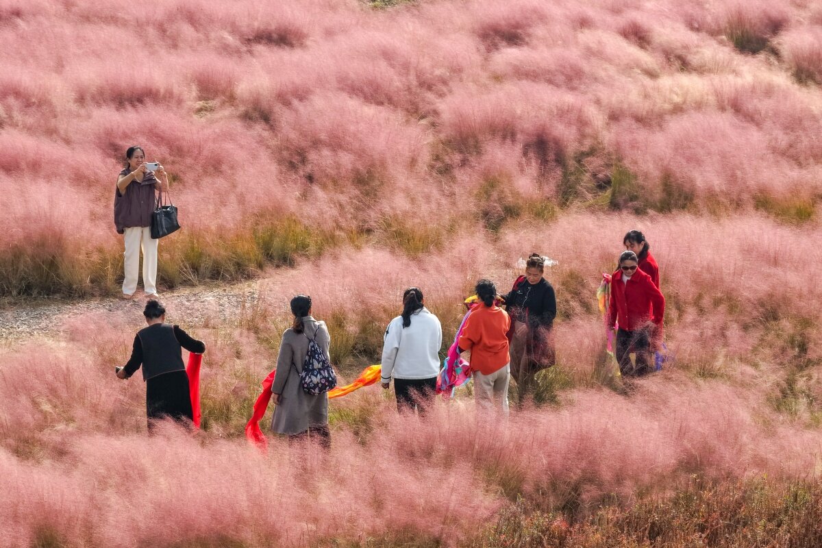 若想感受更为浪漫的秋意,九龙湾郊野公园和马颊河李家桥闸附近则是不二之选。这里大片的粉黛乱子草正迎来盛花期,如烟似霞的粉色花穗连绵成海,微风拂过,掀起阵阵粉色波浪,充满了梦幻与诗意。