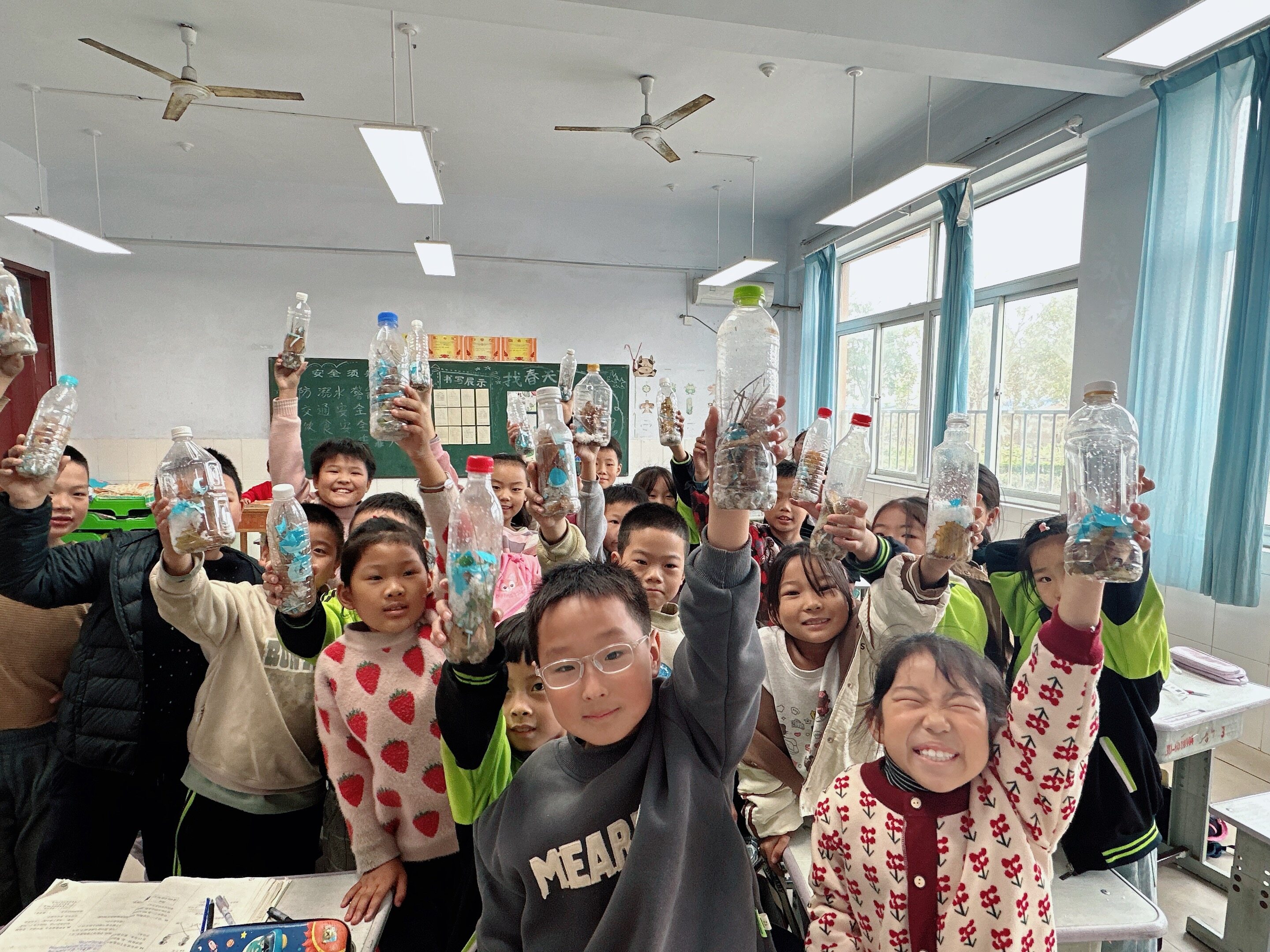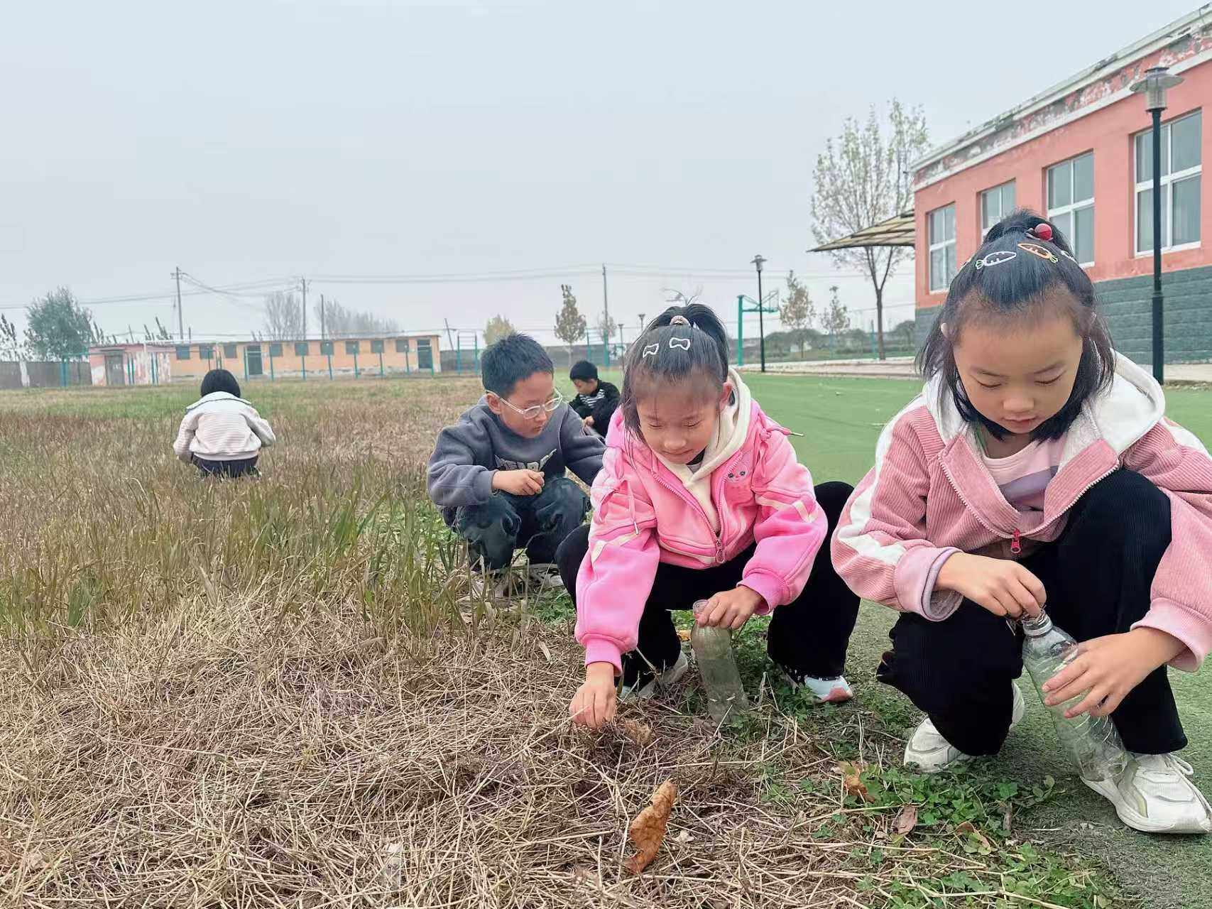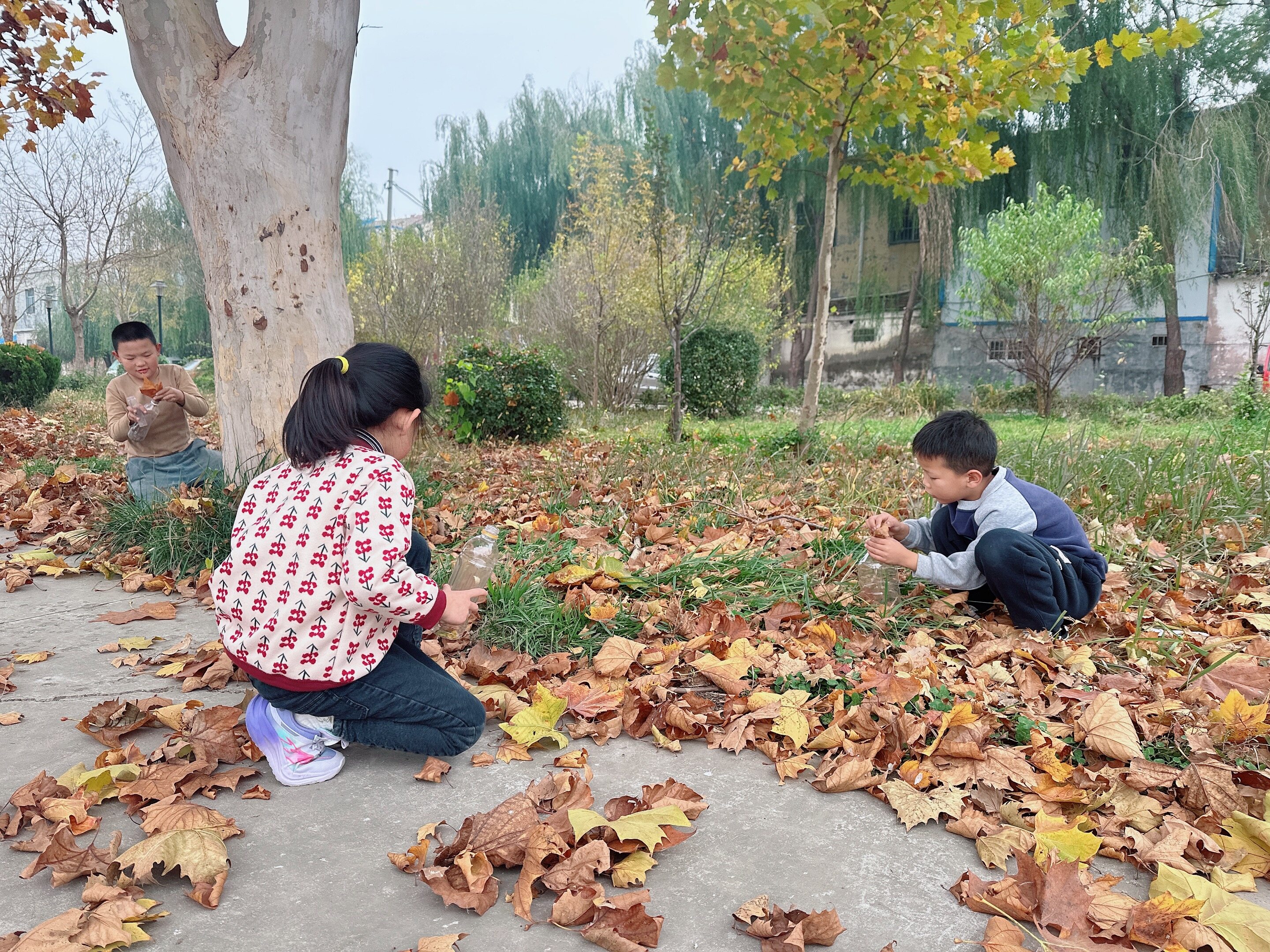 活动伊始,老师带着学生走出教室,走进校园绿地,开启“冬季素材大搜寻”。大家化身“自然观察员”,仔细寻找能代表冬天的自然物:干枯的树枝、褶皱的落叶、细碎的枯草。短短半小时,每个孩子的瓶子里都装满了“冬日宝藏”,脸上洋溢着收获的喜悦。