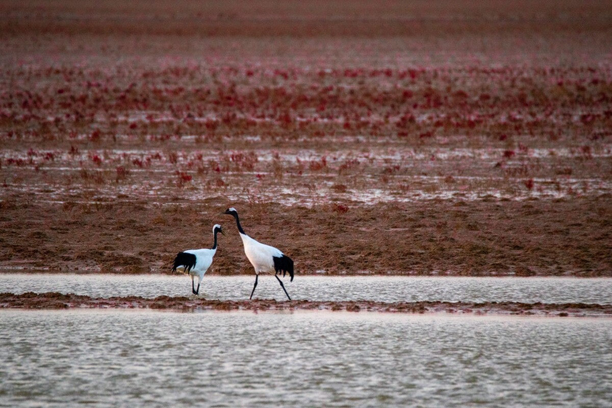 每年秋冬季,东营黄河口湿地迎来数以万计的白鹤、灰鹤、东方白鹳、舟顶鹤、大雁等候鸟,形成美轮美奂的自然盛景。