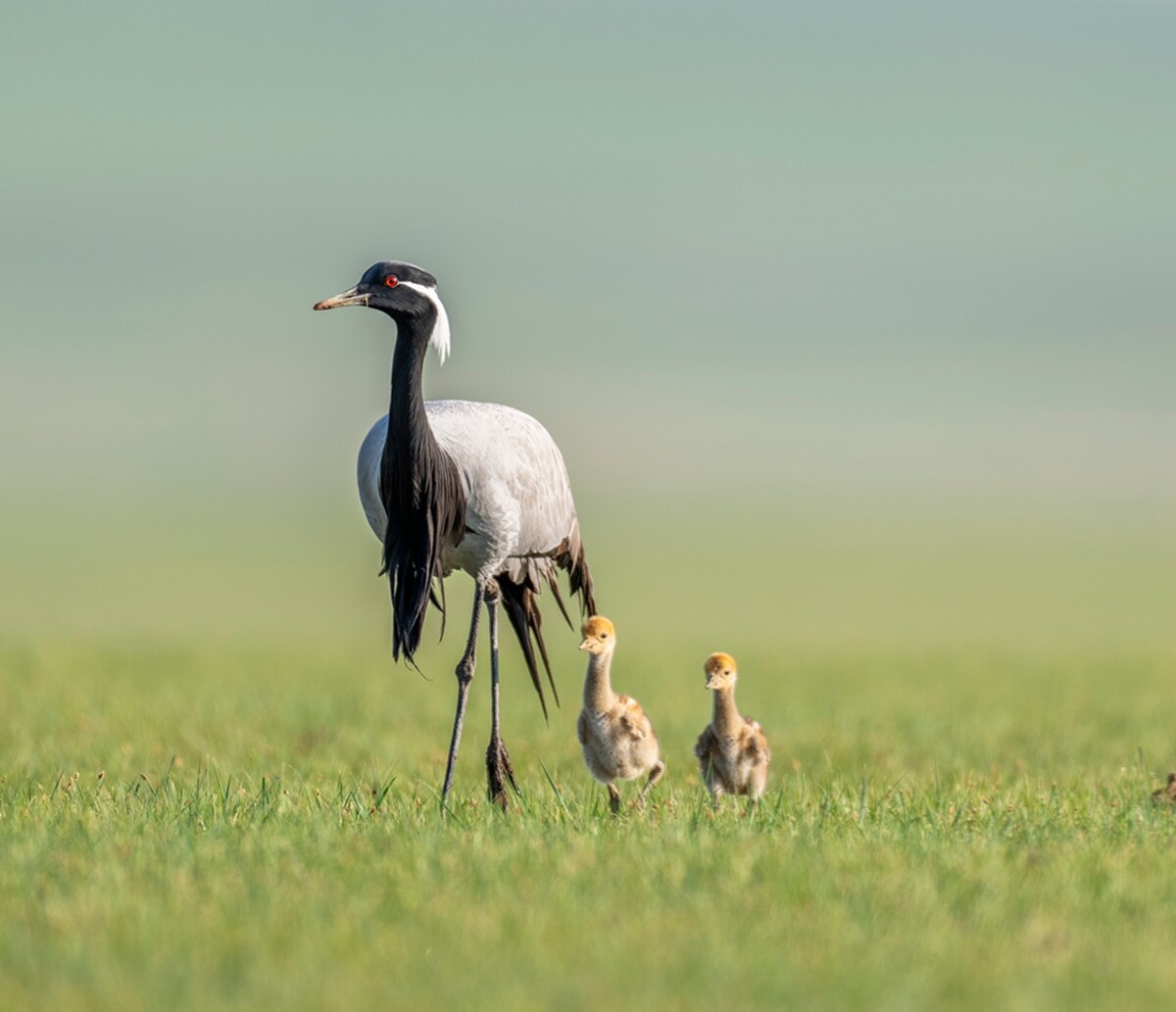 《蓑羽鹤溜娃》 2025年6月10日,摄于克什克腾旗