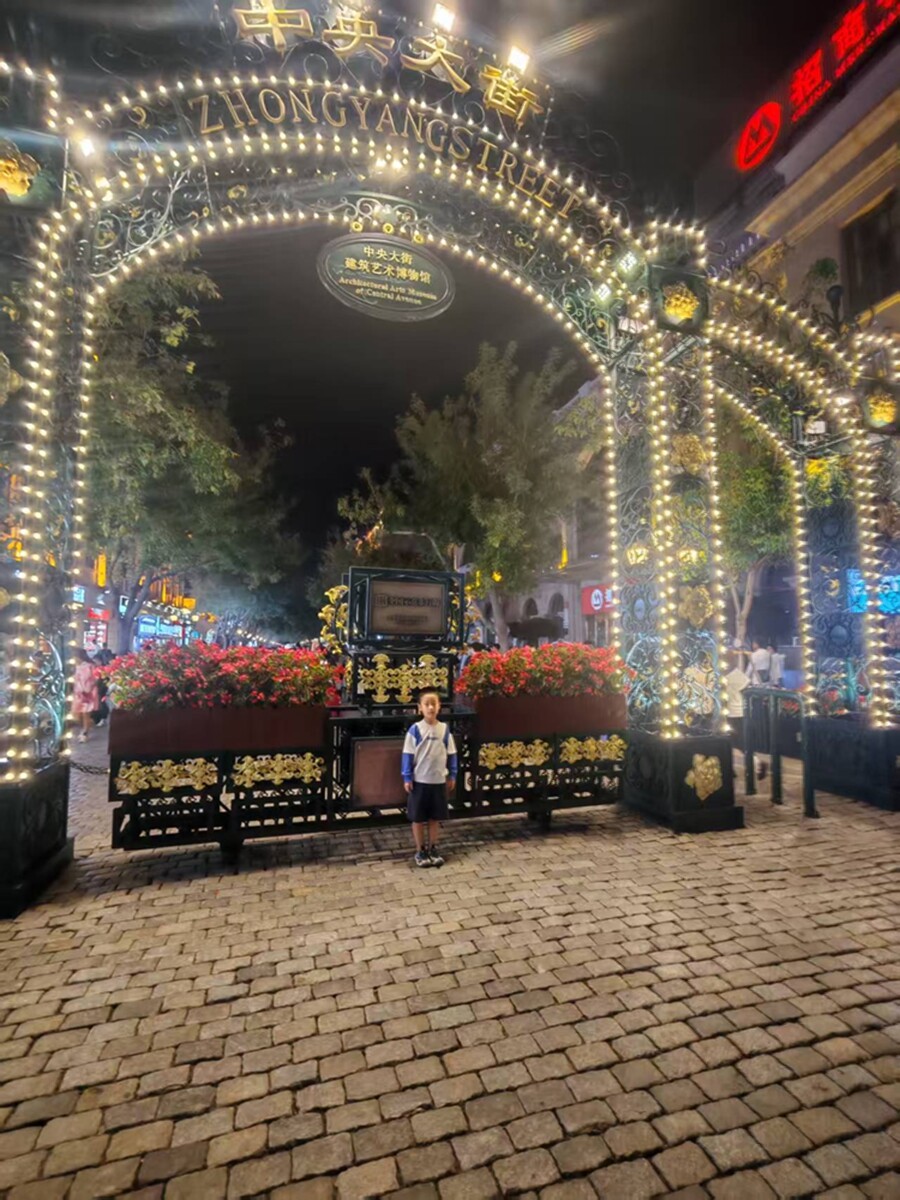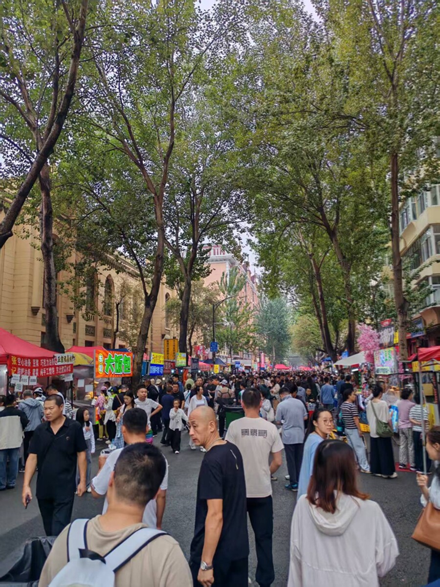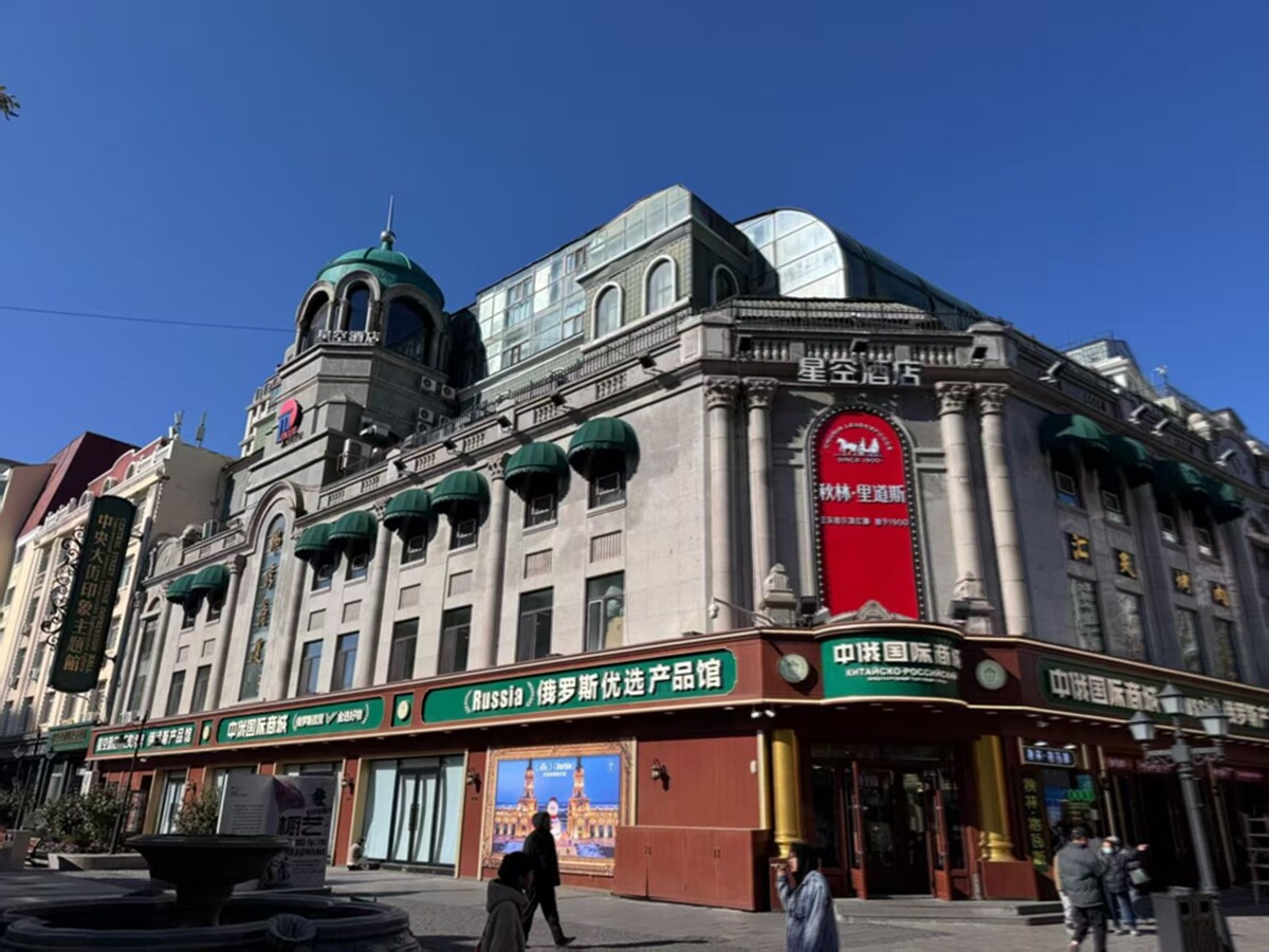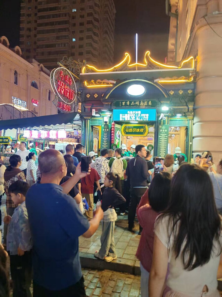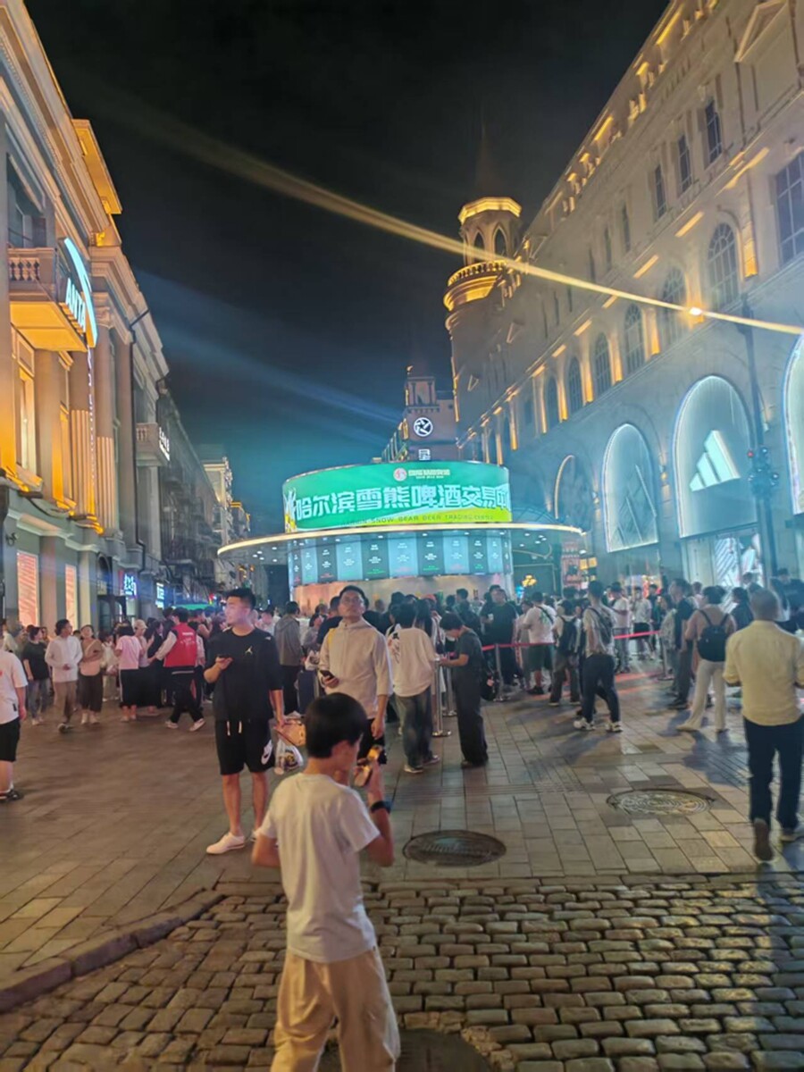 拍摄于2025年8月16日。中央大街是哈尔滨极具代表性的城市名片和旅游景点。中央大街全长1450米,宽21.34米,1997年,哈尔滨市政府把中央大街定为步行街。中央大街上有许多知名建筑和场所,全街建有欧式及仿欧式建筑71栋,涵盖了西方建筑史上几百年才形成的建筑风格样式,被称为“室外建筑艺术博物馆”,并获得“联合国建筑成就奖”。