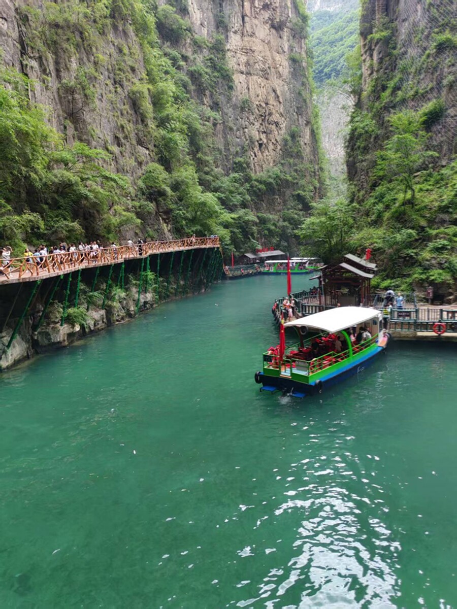 2025年8月4日拍摄于山西省长治市壶关县大峡谷镇八泉峡。高峡平湖,全长三公里,水深60余米,水体碧绿,最大落差约1100米。环境优美,气温适宜,瀑布水量最大,集自然风光与现代时尚于一体,号称“太行第一雄峡”。