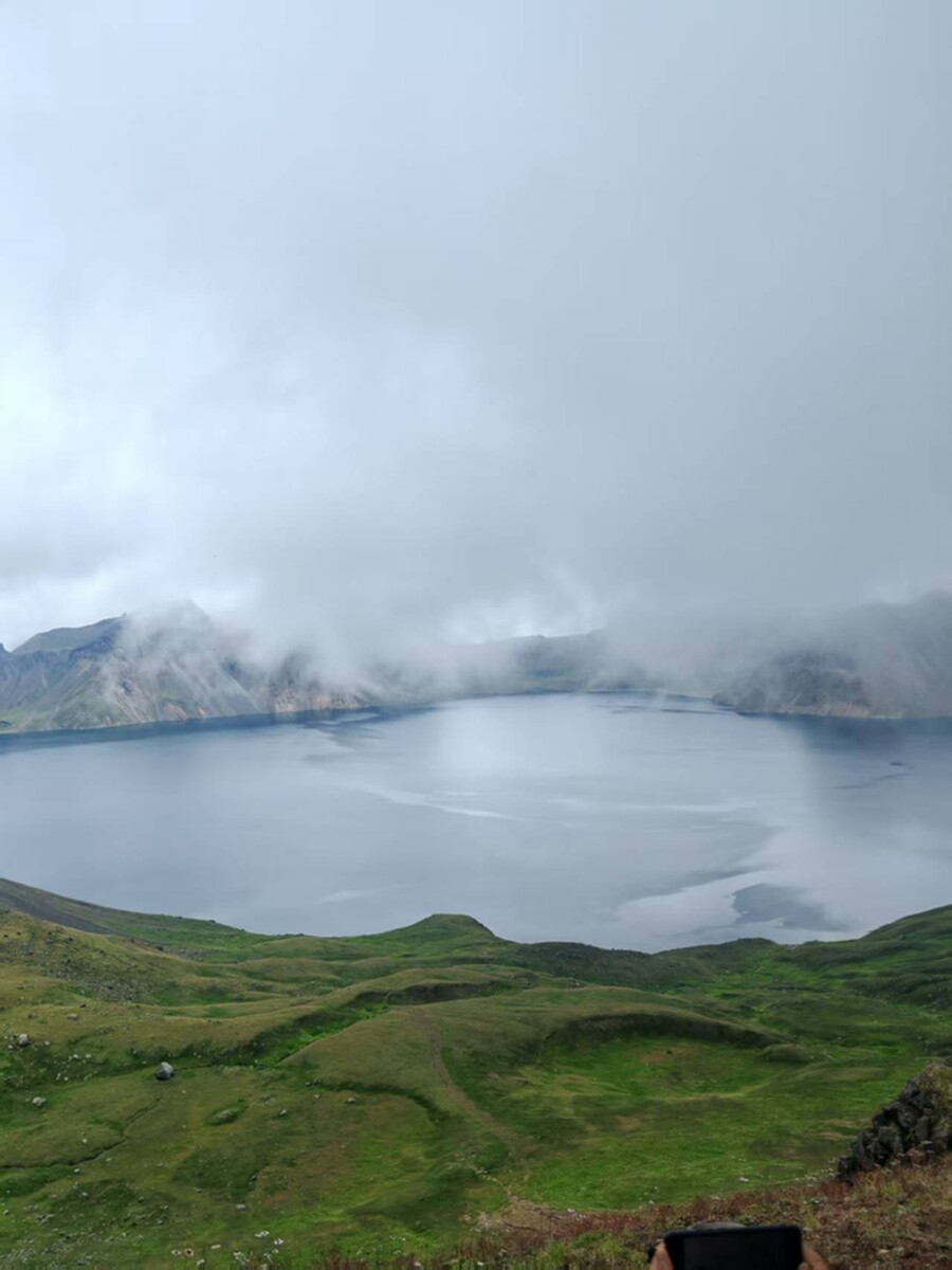 2025年8月24日拍摄于吉林长白山。天池是火山口经过漫长年代积水而成的高山湖泊,是中国海拔最高、水深最深的火山口湖。这里环境静幽,湖水湛蓝透彻,静静地躺在那里,湖面倒映着周围山影,纵然有山风掠过,也只有几处细小的波澜,缓缓地层层推远,美不胜收。 天池之美不在其高不可攀,而是在这方圆千里的土地里有一方如此沉寂宁静的场地。曾经炽热的火山,喷发出滚滚硝烟迷雾,而最终形成美玉般的一湾净水。