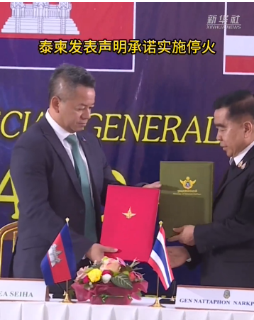 泰国和柬埔寨边界总委员会第三次会议27日在泰国尖竹汶府边境口岸举行。会议发表联合声明承诺,双方从当天12时起实施停火。据新华社