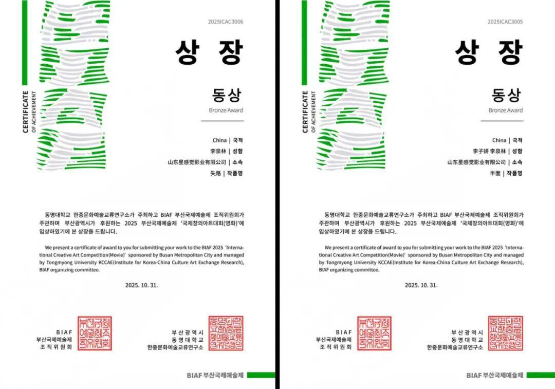 在2025年釜山国际艺术节中,李泉林导演的两部文艺剧情短片《失路》和《半面》,分别获得铜奖。