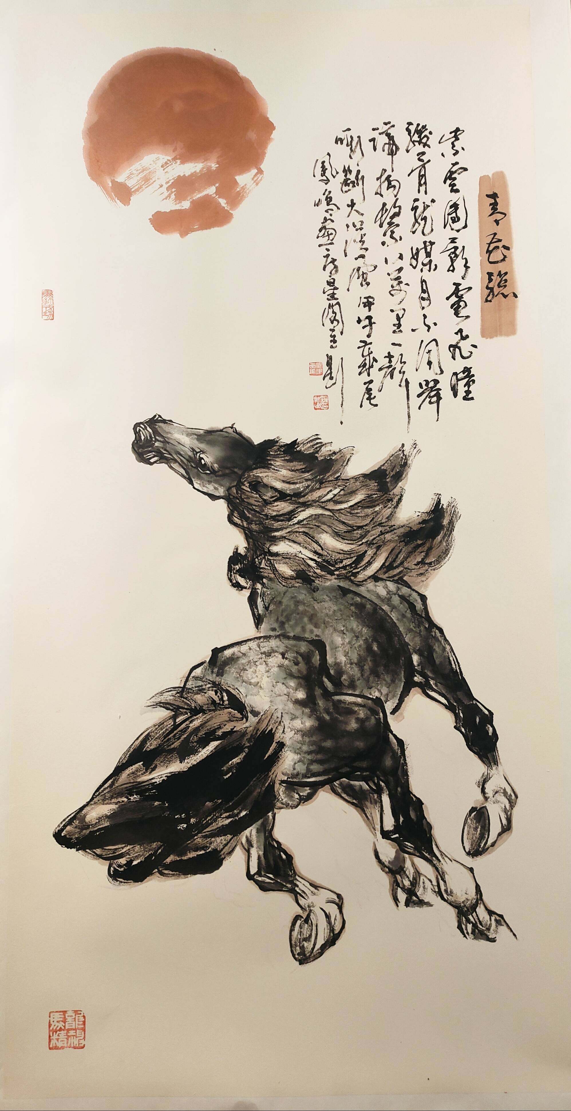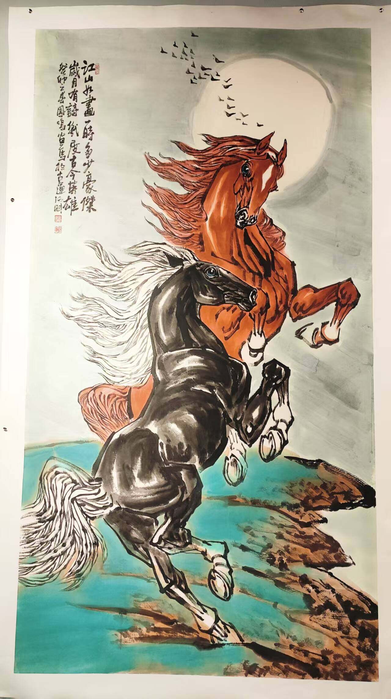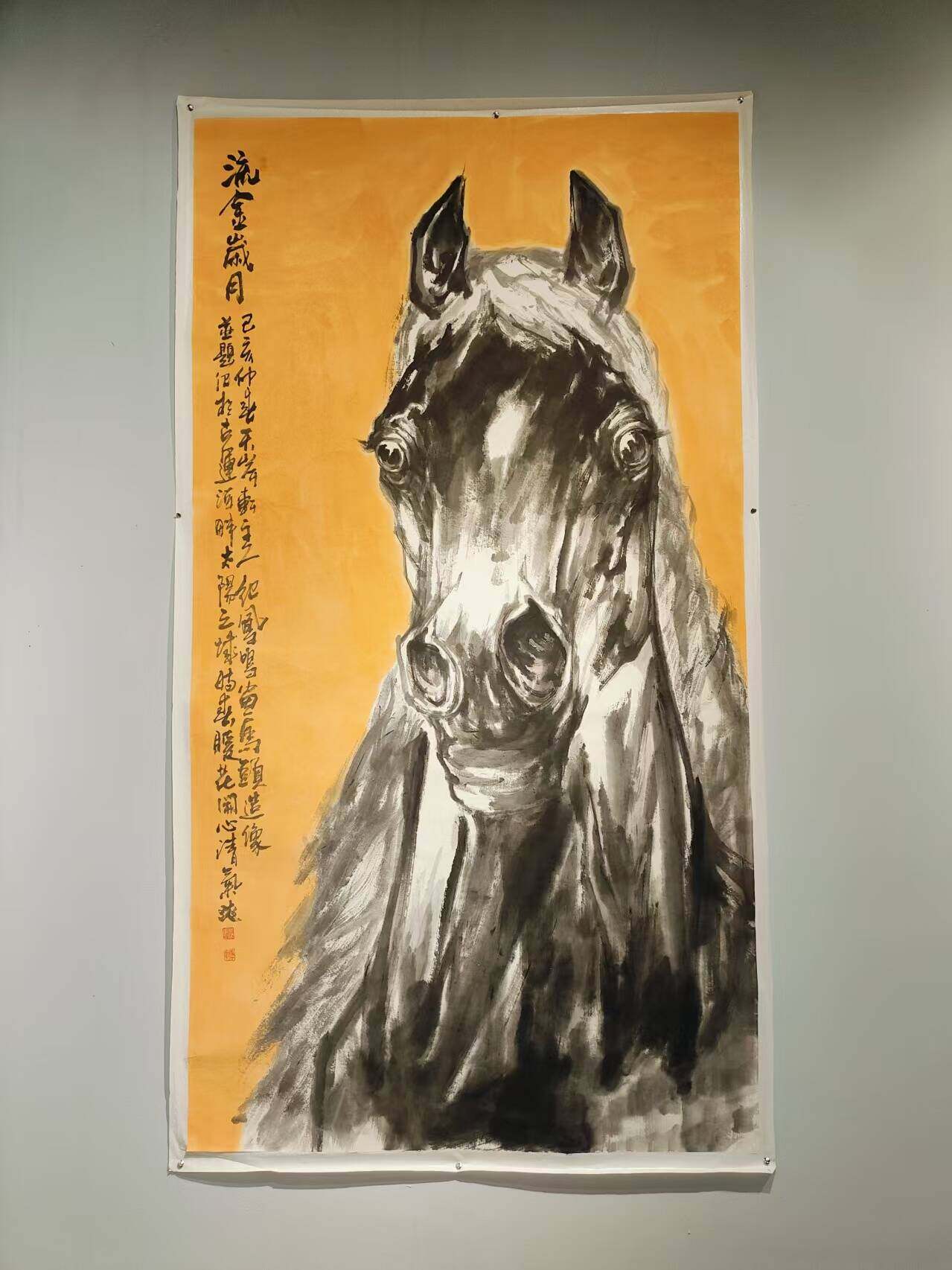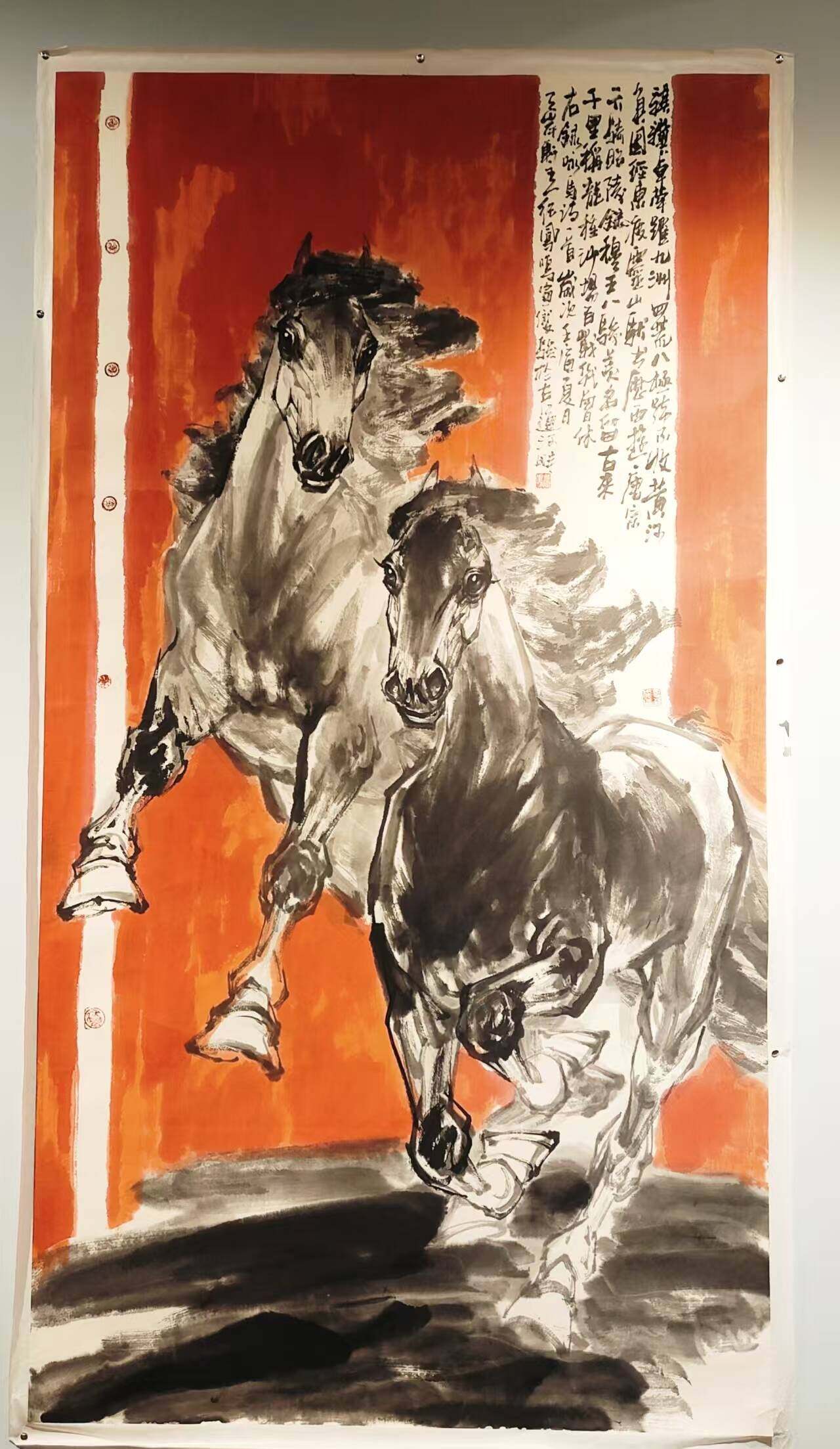 纪凤鸣是当代知名的画马名家,本次展览作品以马为创作主题,他的作品在造型、笔墨、气韵等方面都备受赞誉,笔下的马气势不凡,仿佛有风雷之声,给人以强烈的视觉冲击,展现出骏马的英姿飒爽和勃勃生机,让观者仿佛能感受到马的速度和力量。他在继承传统画马技法的基础上,将水墨人物语言和画马技法整合贯通,形成了自己独特的艺术风格,使马的形象更具个性和内涵。