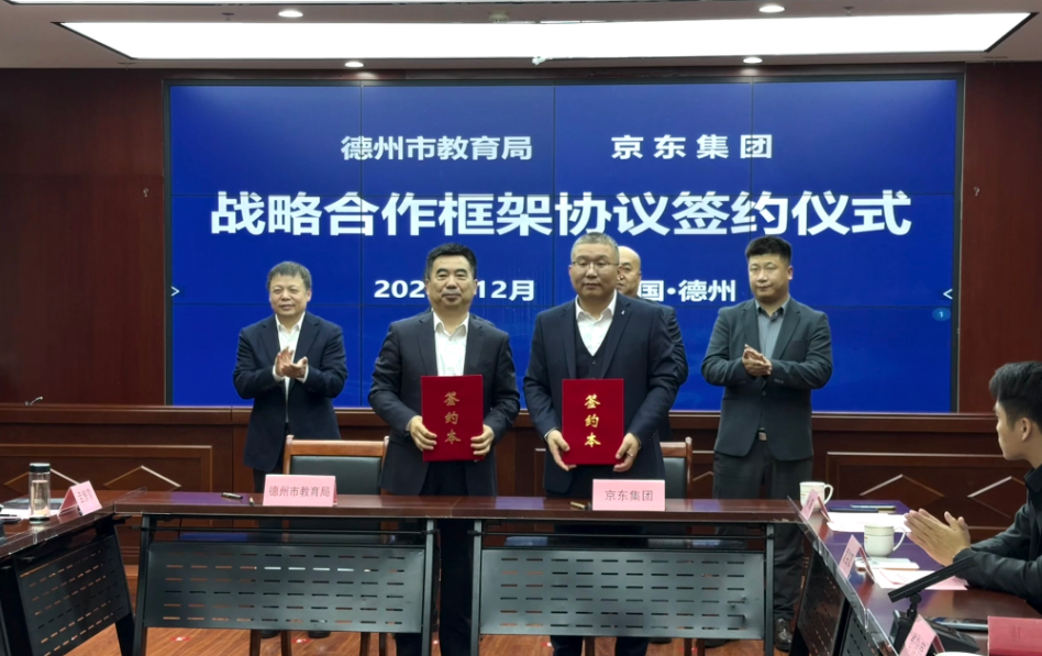 德州晚报全媒体讯 12月30日下午,德州市教育局与京东物流教育战略合作签约仪式在德州市教育局举行。德州市政府、市教育局、县(市、区)教体局、相关职业院校及京东集团代表共同出席,此次签约仪式标志着德州职业教育与行业头部企业在深化产教融合、推动人才培养与产业需求对接方面迈出关键一步。