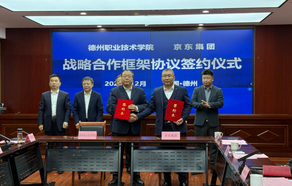 在与会嘉宾的共同见证下,德州市教育局、德州职业技术学院以及禹城、宁津、齐河、武城四县(市)职业中专主要负责人,与京东集团代表依次上台签署战略合作协议。此次多方签约,形成了“政府引导、企业主导、学校主体”的三方联动新格局,为构建更紧密的校企协同育人机制奠定了坚实基础。
