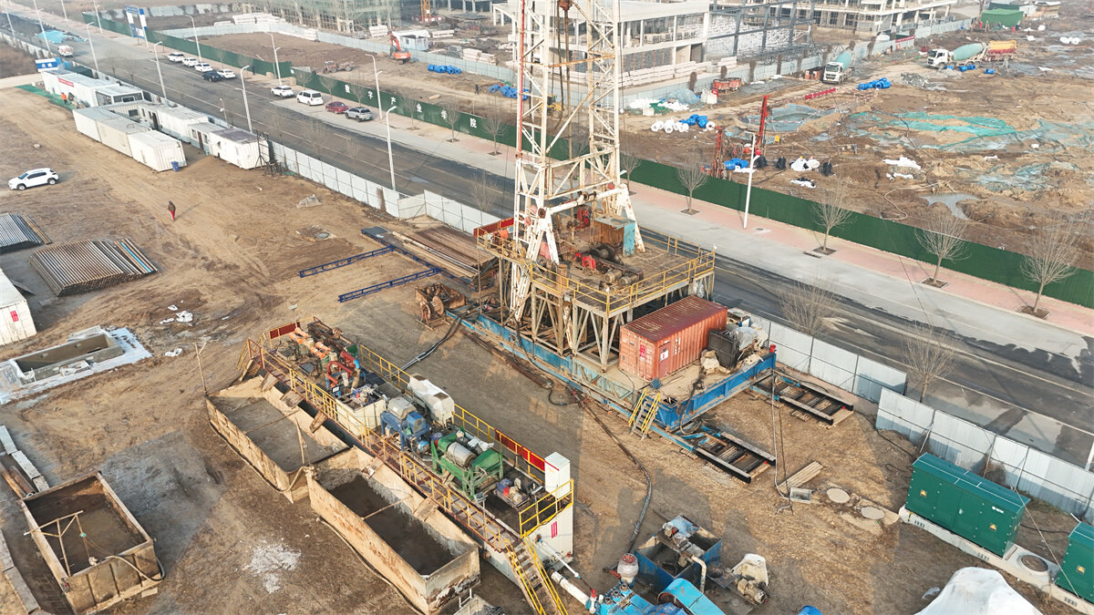 该项目由山东省地矿局第二水文队承接,将首次采用“浅层地热+深层地热”协同设计的模式,为产业园提供清洁能源综合服务。山东省地矿局第二水文队地质调查中心副主任王炜龙介绍,浅层地热系统将用于11.81万平方米商业楼宇的制冷与供暖;而南侧即将施工的两眼深层地热勘探作业,将探明矿区内中深层地热资源概况,为后续周边近60万平方米的住宅与公共建筑供暖提供稳定热源。
