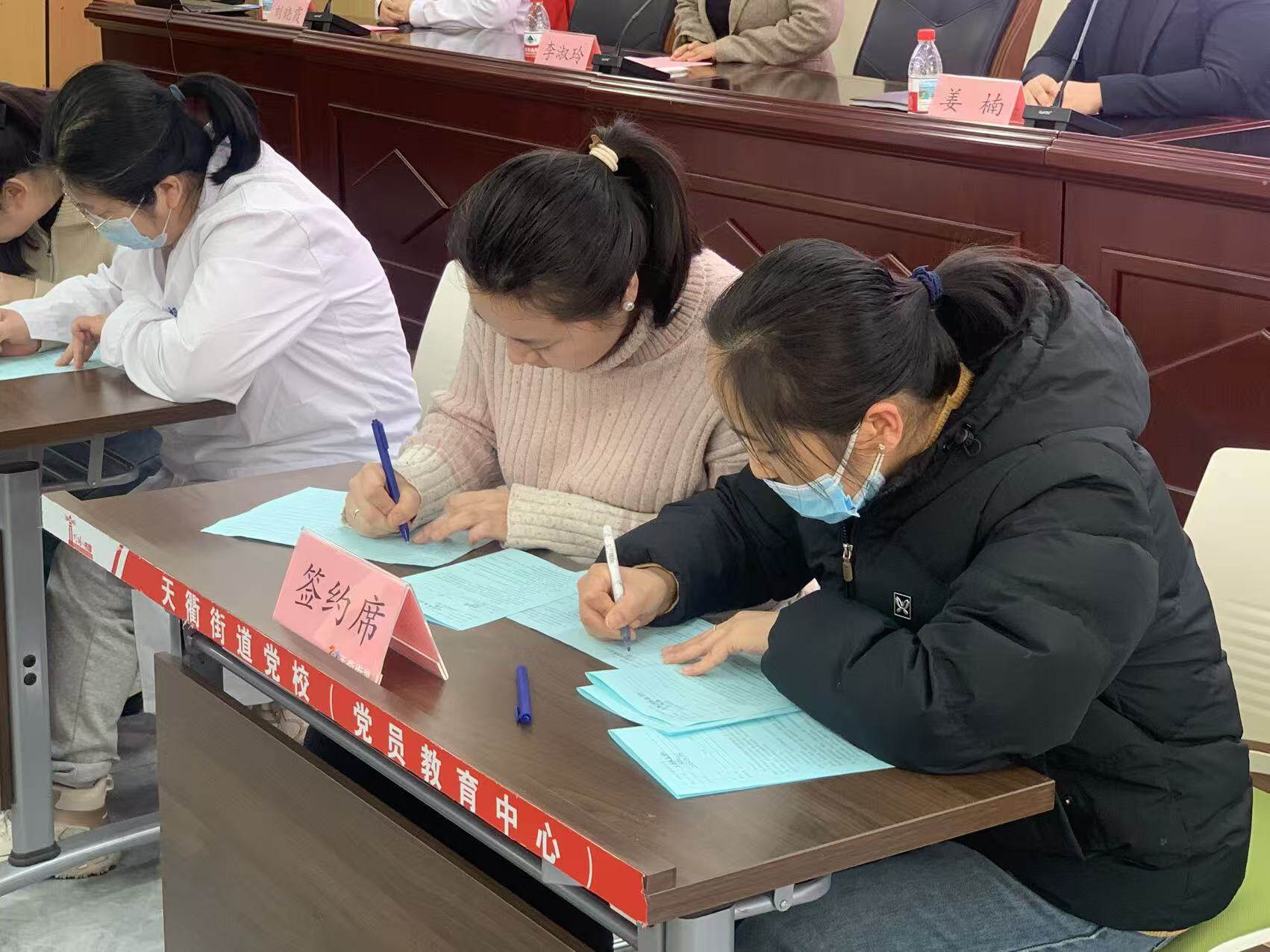 随后,活动进入签约仪式环节,各家庭医生团队代表与网格员代表依次上台,郑重签署合作协议。落笔的瞬间,不仅定格了双方携手守护居民健康的决心,更奏响了基层健康服务提质增效的新乐章。这也标志着天衢街道家庭医生签约服务网格员团队正式组建,开启了“医网协同、优势互补”的基层健康服务新模式。
