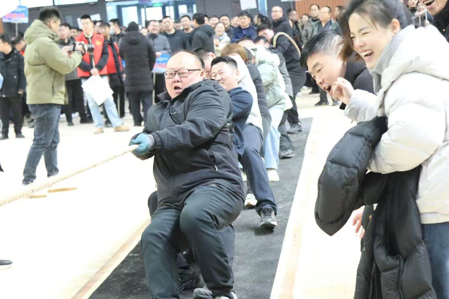 冬日拔河,激情开赛。1月10日,庆云县文体中心场馆内,第十六届全民健身运动会系列活动启动仪式暨“世纪星杯”全民拔河比赛举办。活动旨在以体育赛事和群众健身活动为依托,发扬团结协作精神,营造凝聚力量、鼓舞士气,形成干事合力的浓厚氛围。