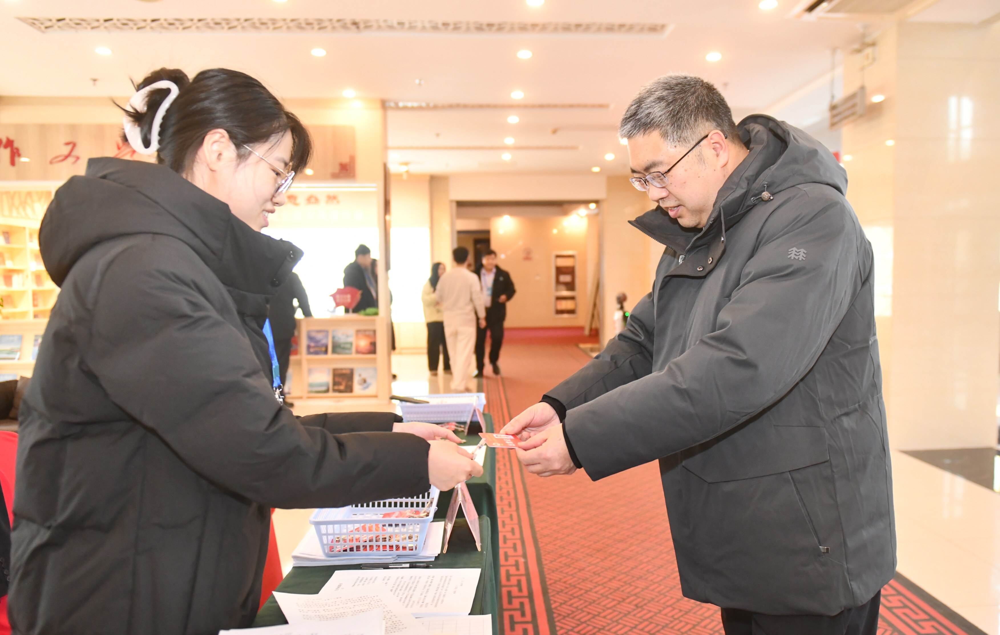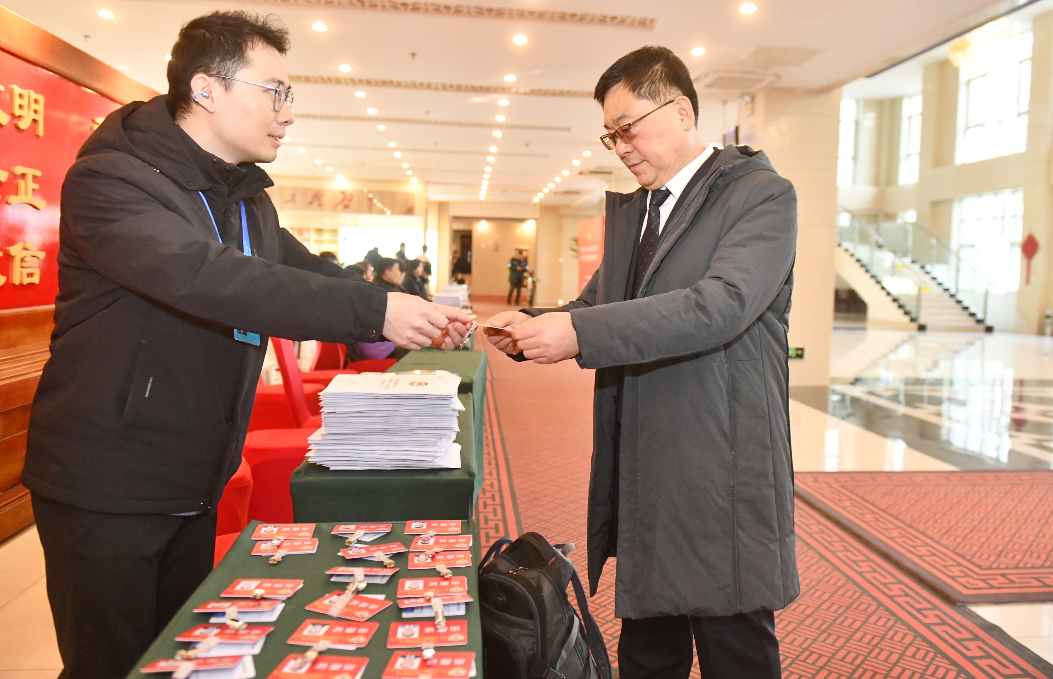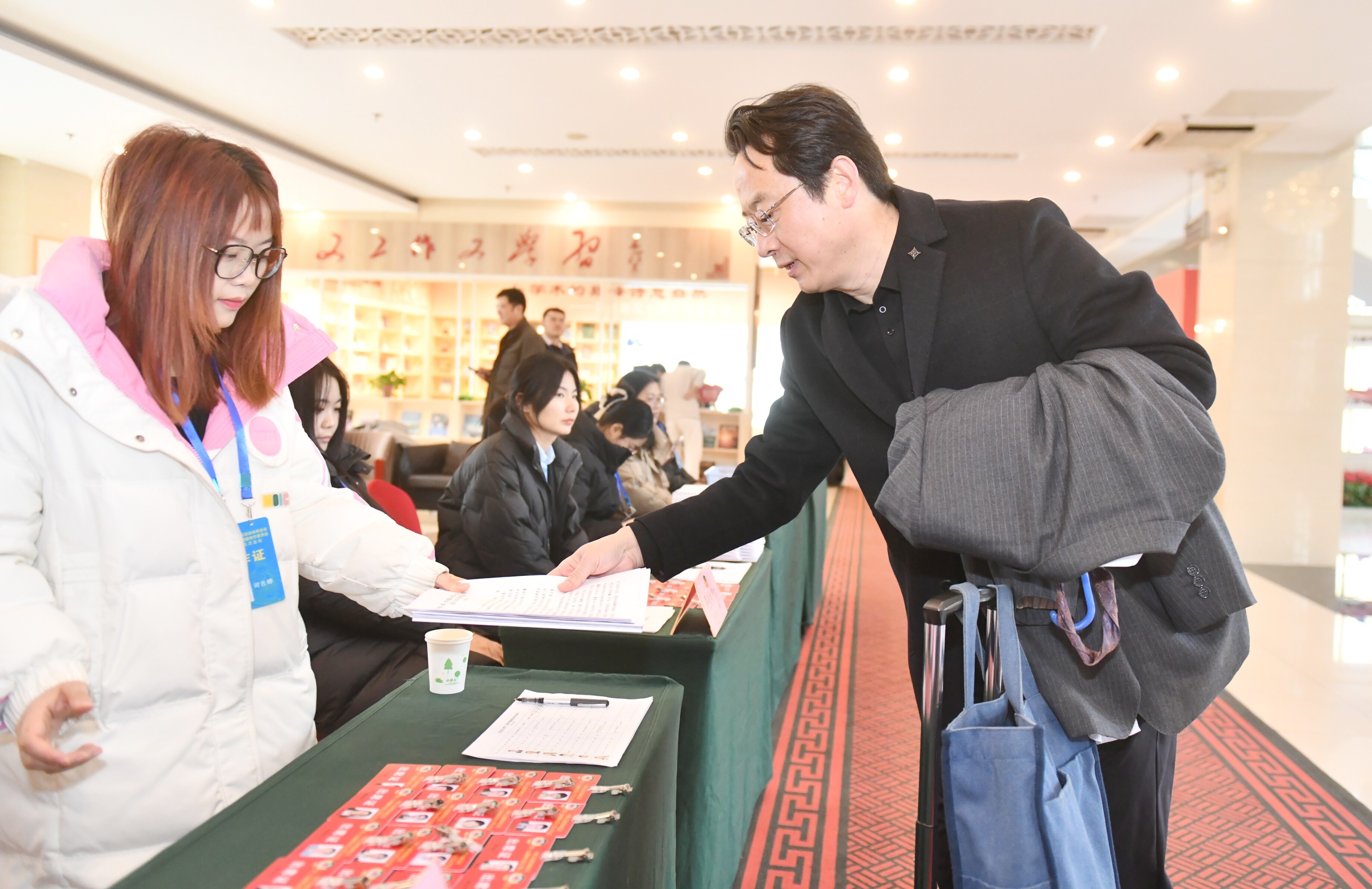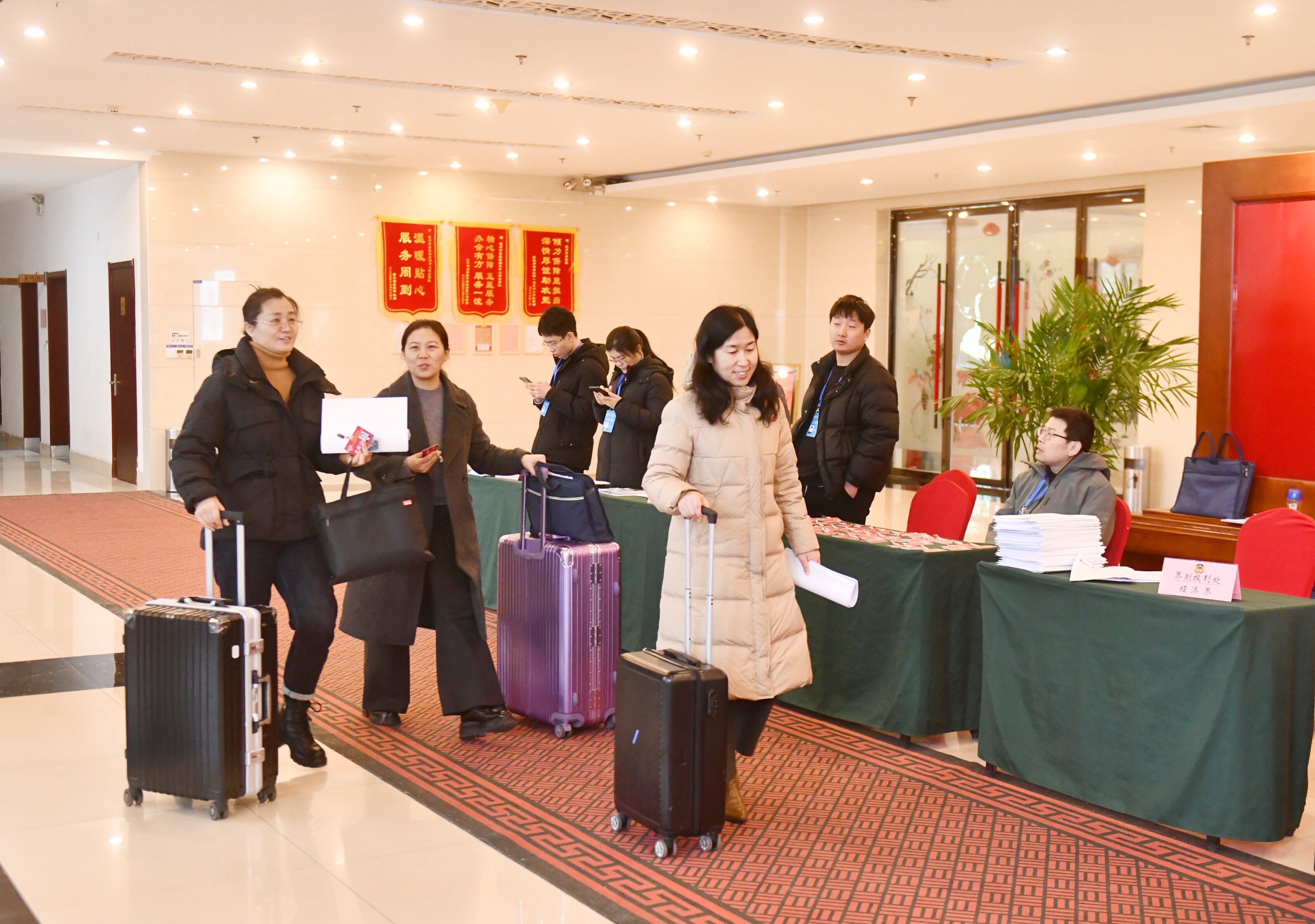 在委员驻地,报到现场秩序井然,委员们依次进行登记、领取证件材料等,为即将召开的大会做好准备。
