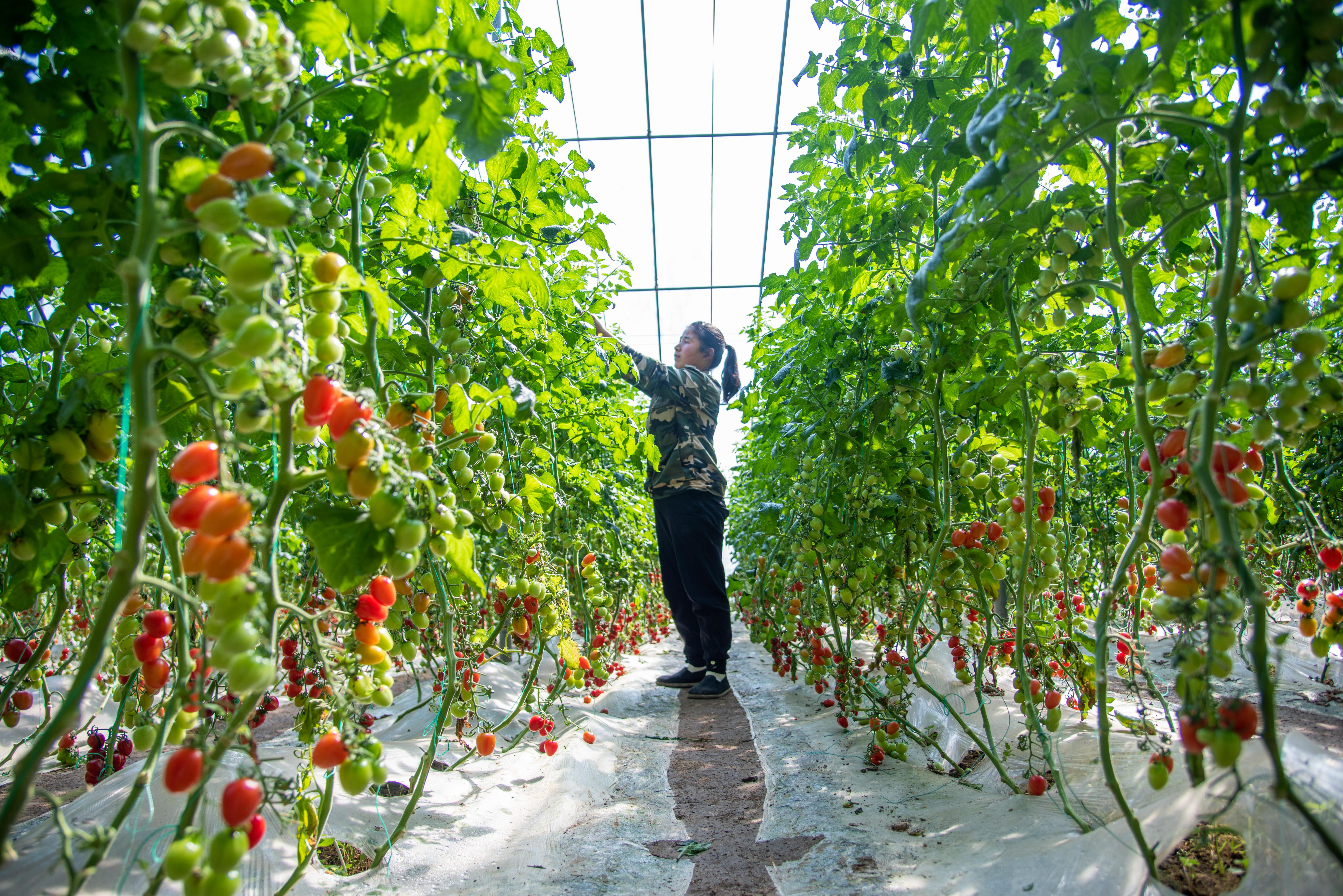 走进尚堂镇南侯村绿谷花田研学合作社,一排排番茄藤蔓上挂满了青甜、京丹等多个品种的小番茄,红的黄的,像一串串小灯笼。游客手提果篮,穿梭在翠绿的枝叶间,随手摘下一颗放入口中,清甜的汁水瞬间在舌尖绽放。