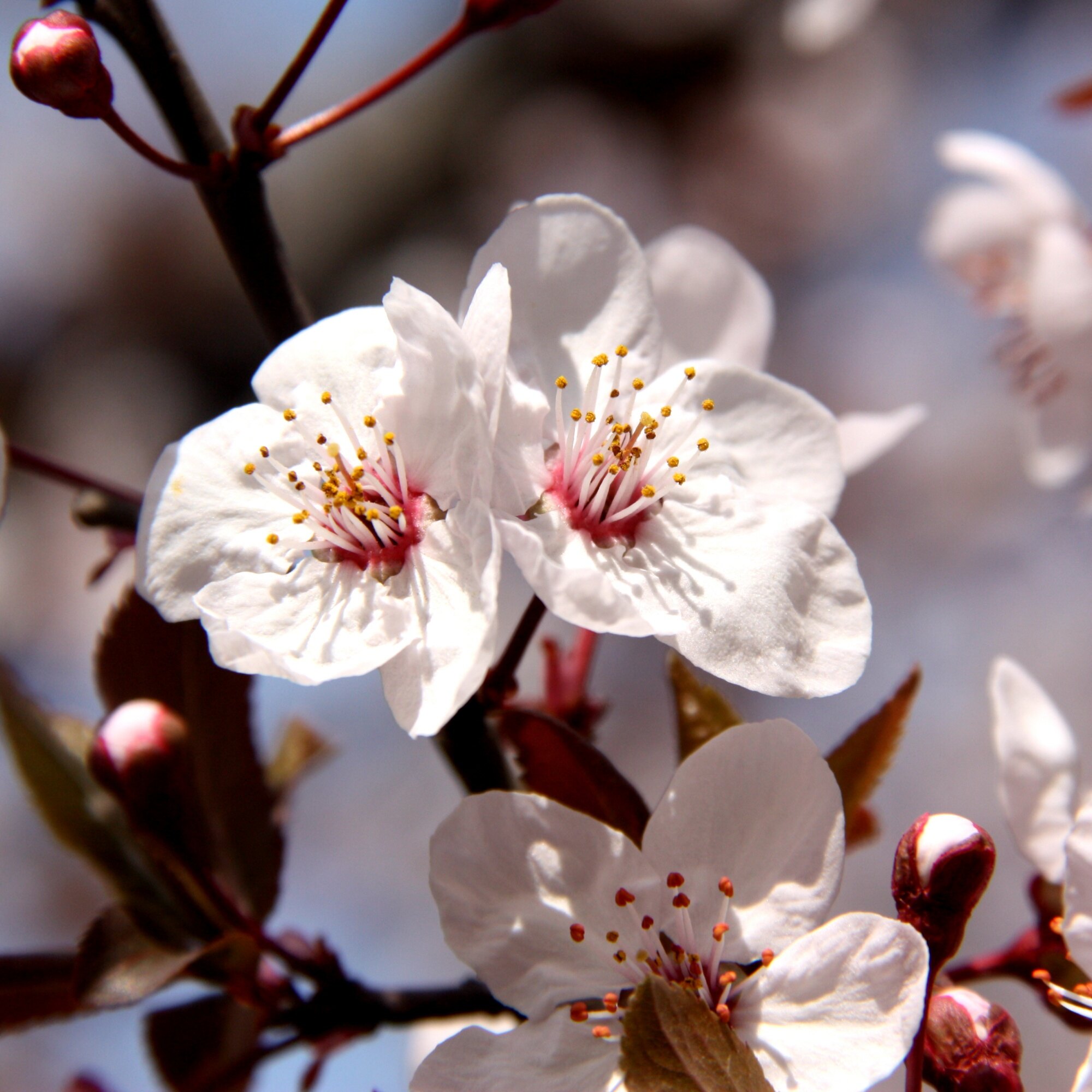 紫叶李:淡粉花朵,紫红叶片,花叶同放,艳如桃李