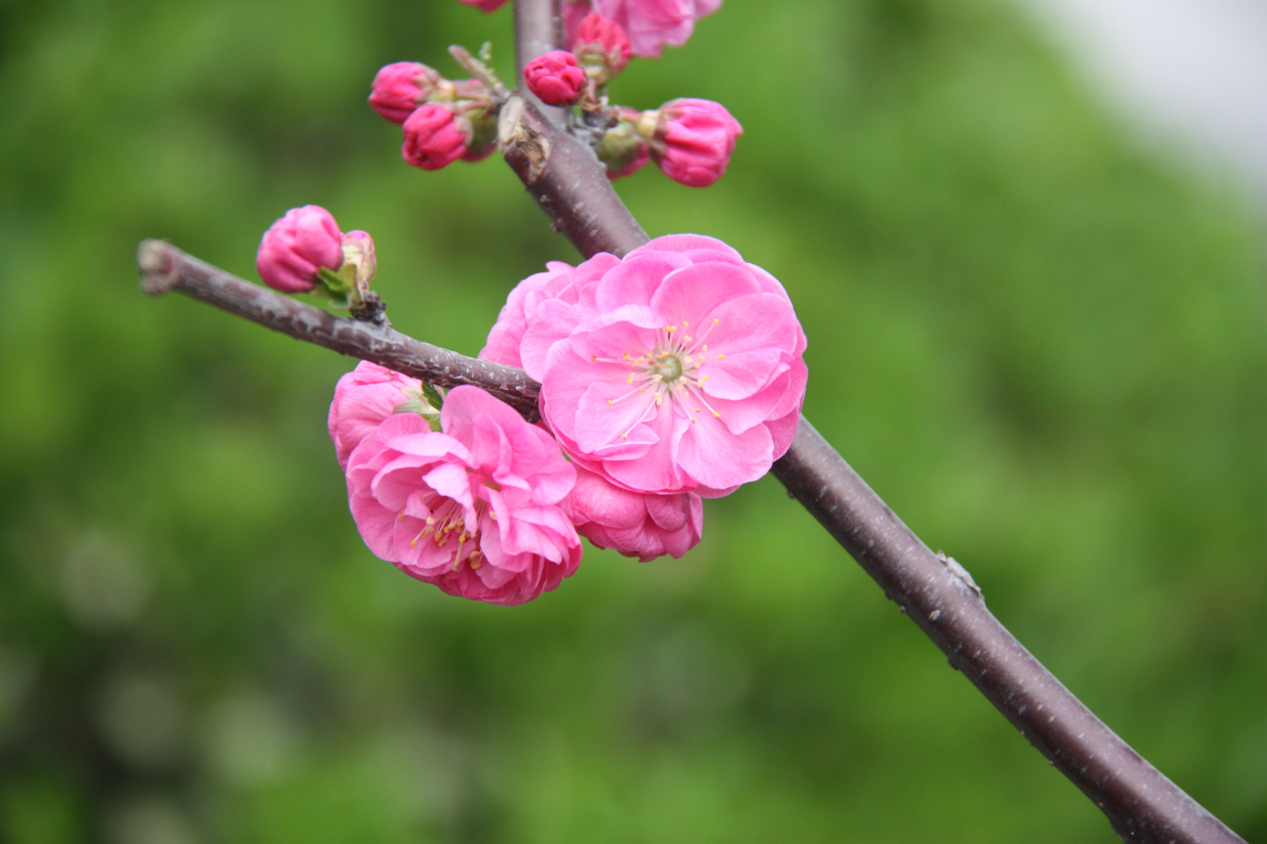 榆叶梅:叶如榆、花似梅,粉红至深红,花团锦簇