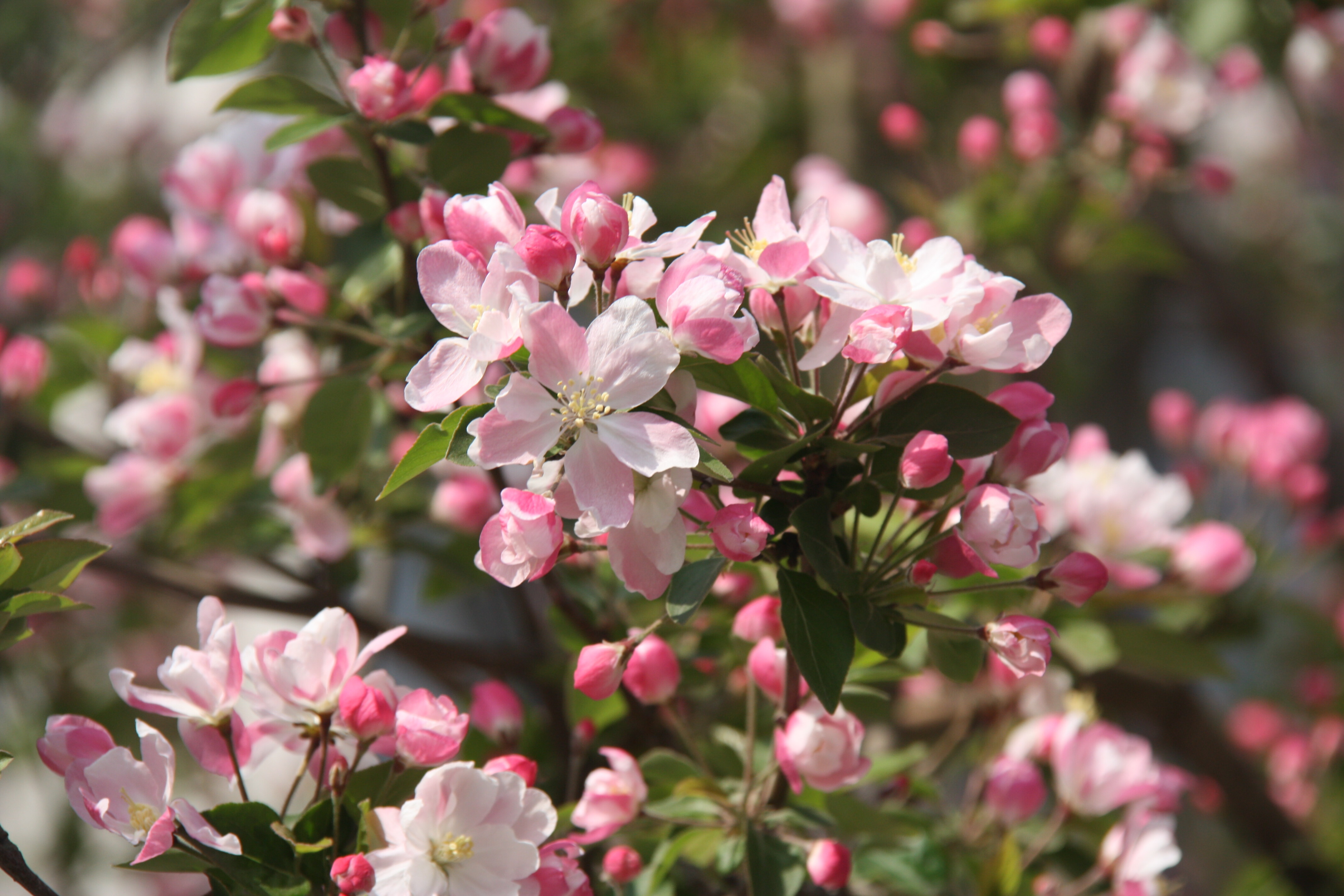 西府海棠:花蕾红艳,开后淡粉,花团似锦