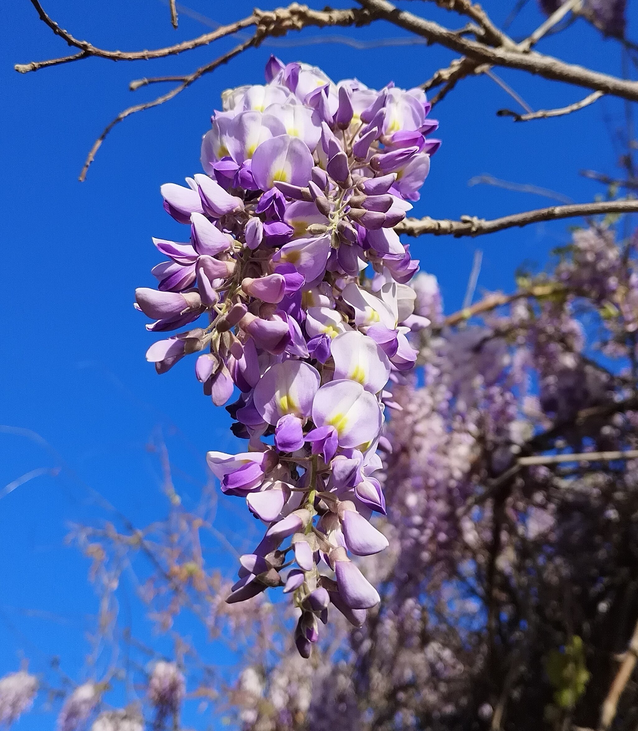 紫藤:紫色花穗垂坠棚架,烂漫优美,芳香袭人